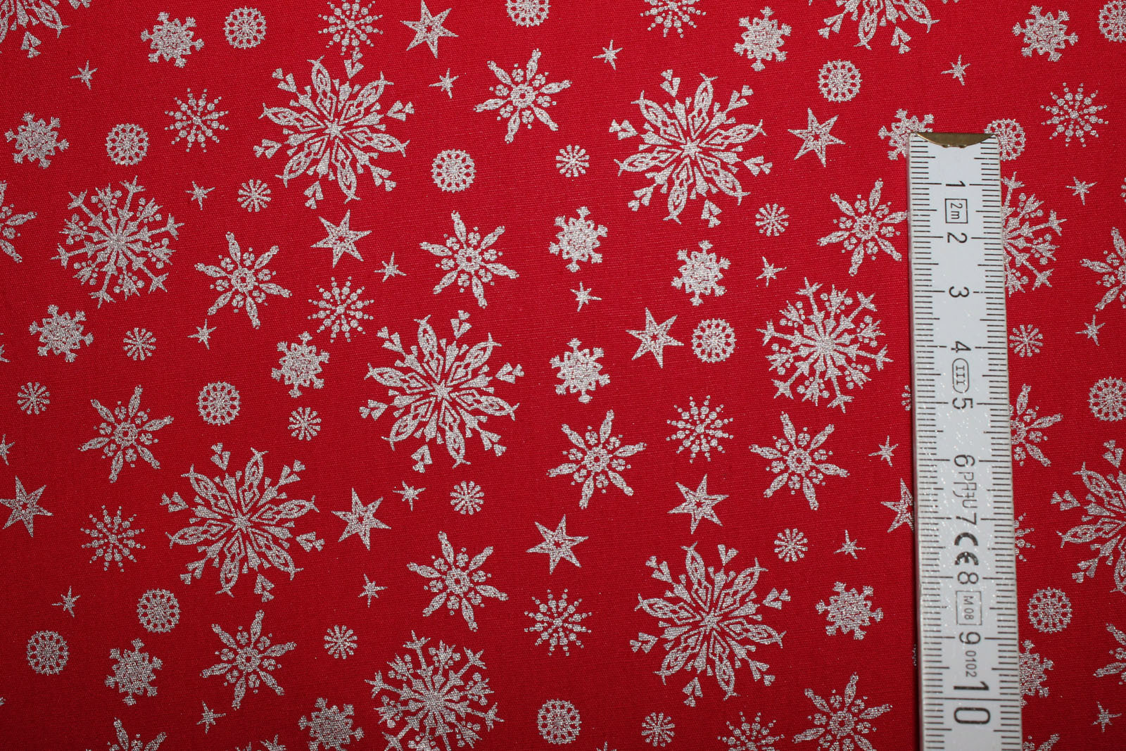 usw. Winterlicher Baumwollstoff in rot, bedruckt mit silbernen Schneeflocken in unterschiedlichen Größen. Die anderen Farben auf dem dritten Foto gibt es auch hier im Shop. Sie dienen der Inspiration und gehören nicht zum obigen Angebot. 100 % Baumwolle