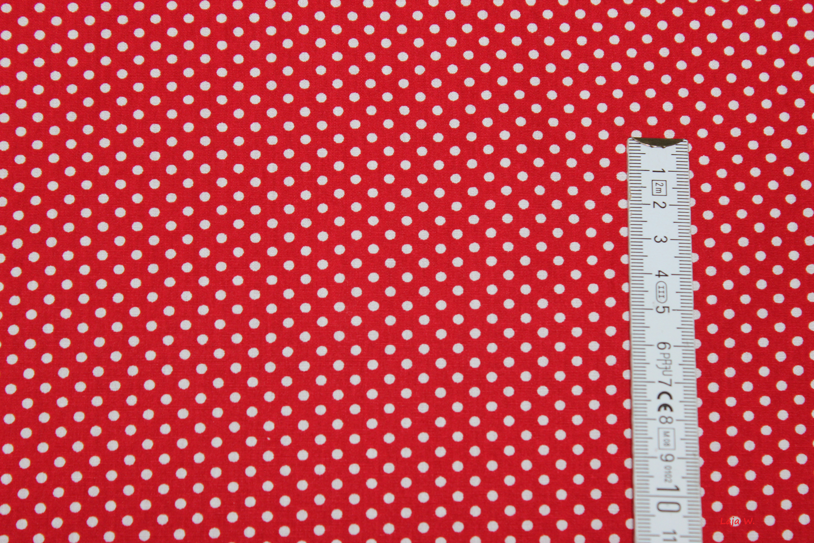 Hier biete ich Euch einen gepunkteten Baumwollstoff der Firma Stenzo in rot mit weißen Punkten an.