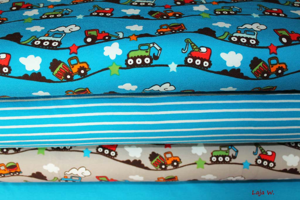 Hier biete ich Euch ein ganz tolles Feinstrickbündchen vom Stoffonkel in kräftig blau an. Dieses Bündchen passt perfekt zu den Baggerstoffen vom Stoffonkel.