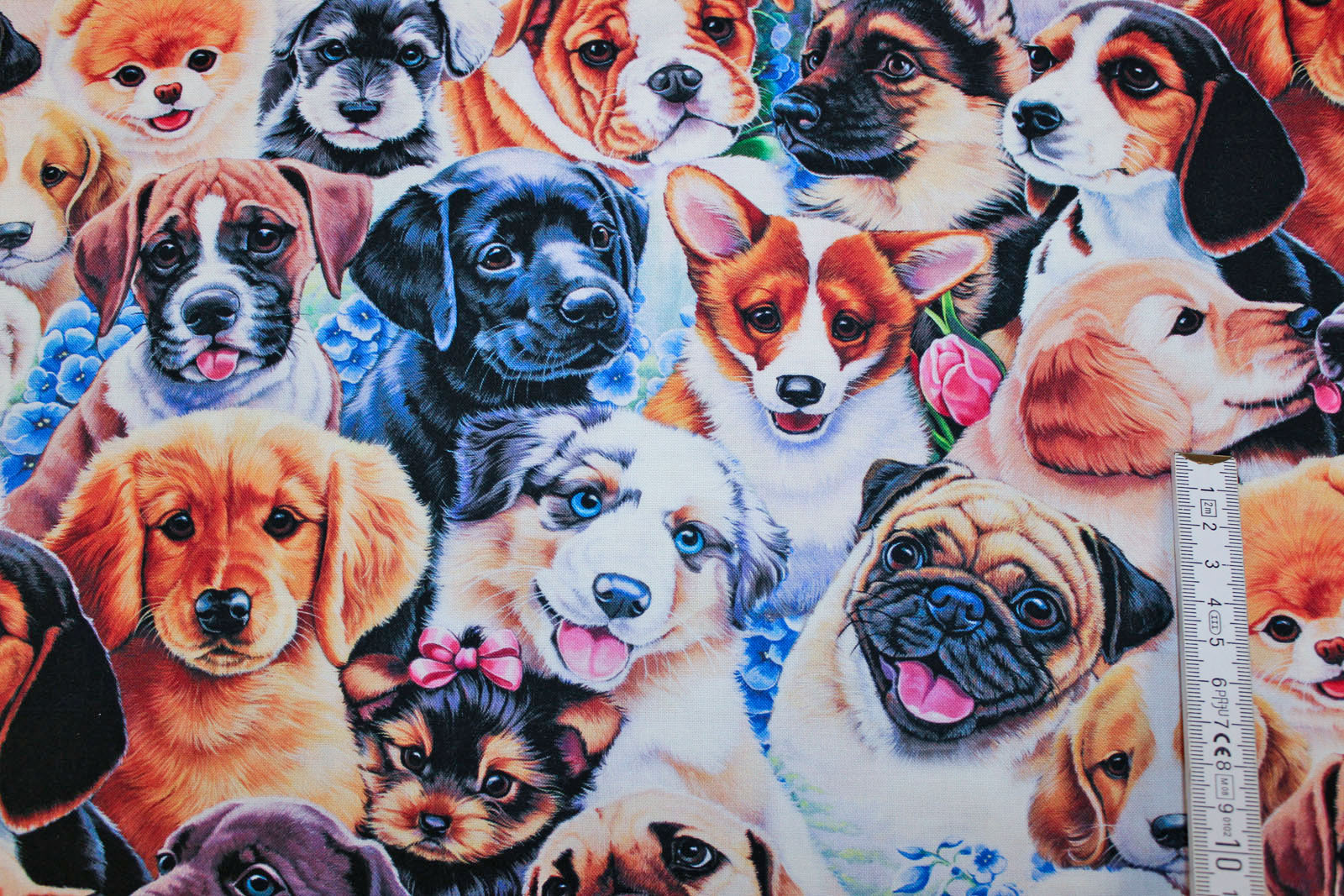 usw.Niedlicher Baumwoll-Designerstoff "Dogs" aus dem Hause David Textile in Digitaldruckqualität. Ideal für Kissen, Taschen, Homedeko uvm. Auf der Webkante steht, dass dieser Stoff nur für den privaten Gebrauch nutzbar ist. Gewerbliche Verarbeitung wird leider untersagt.