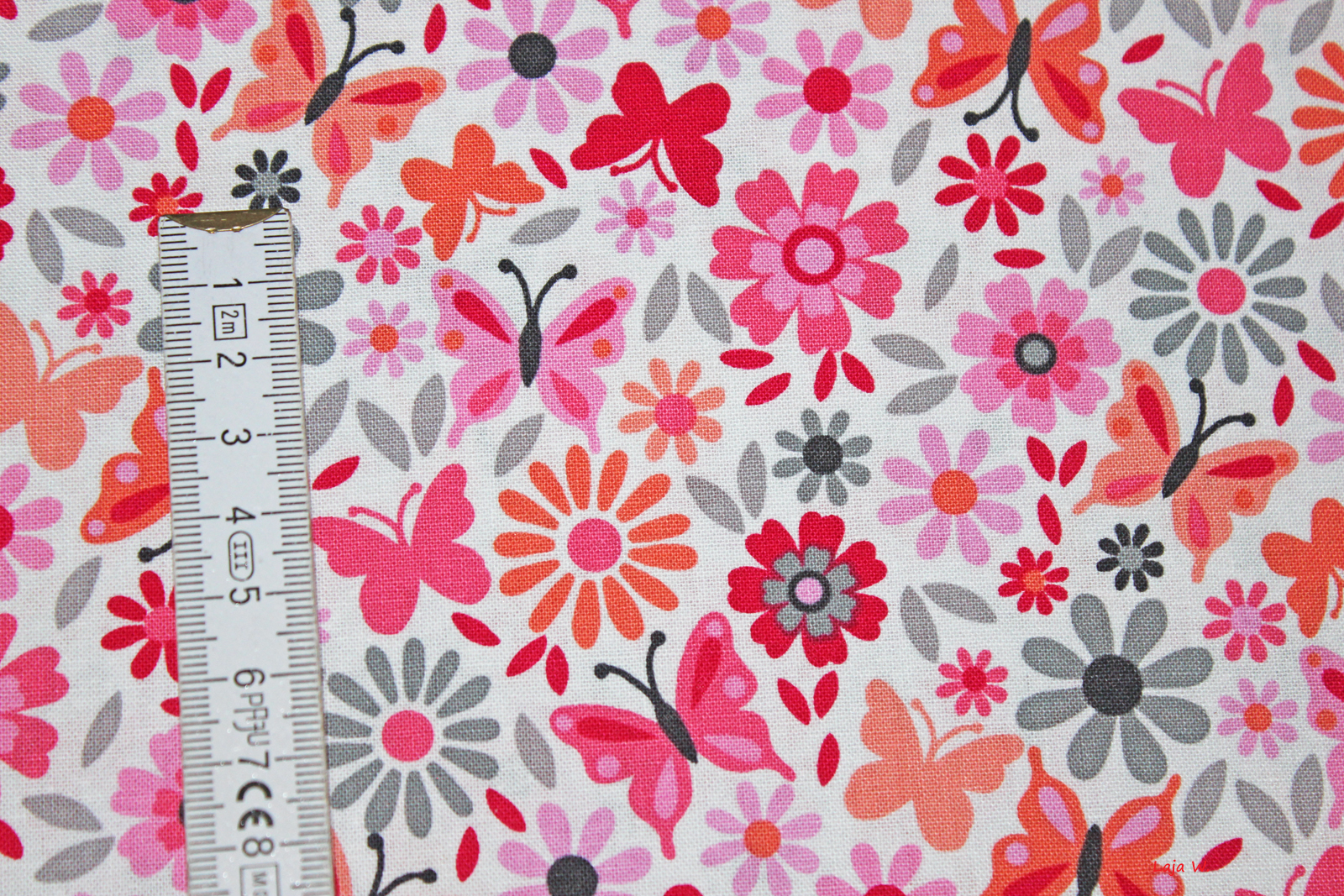 usw.Hier biete ich Euch einen tollen Designerstoff aus dem Hause Michael Miller mit kleinen Blumen und Schmetterlingen an. Der Untergrund des Stoffes ist weiß.