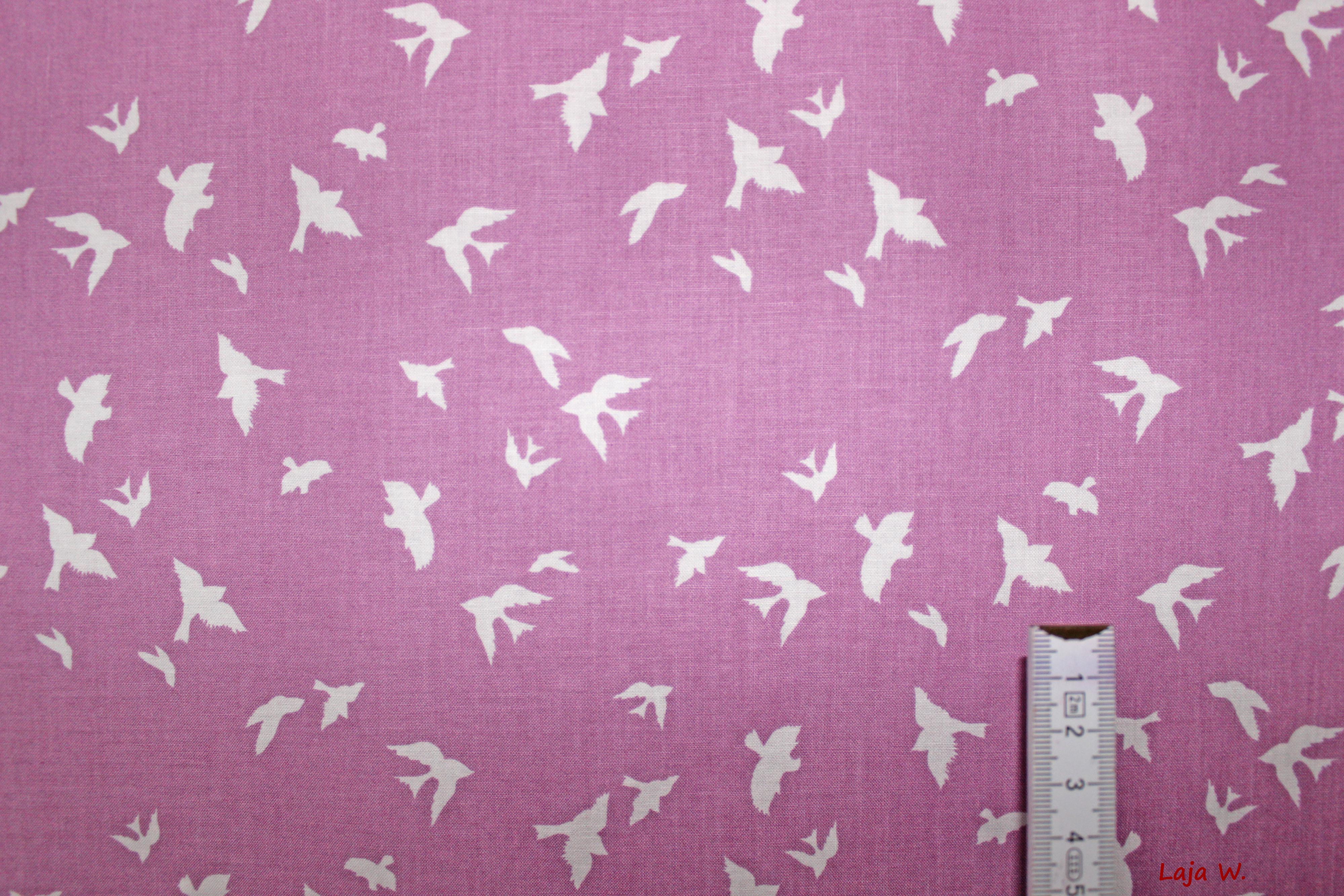 Hier biete ich Euch einen trendigen Designerstoff von Violet Craft aus dem Hause von Michael Miller mit cremefarbenen Vögeln auf orchidfarbenem Untergrund an.