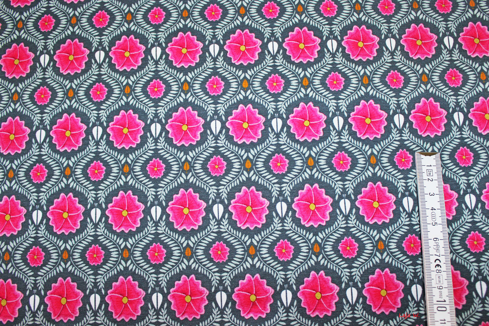 Jersey "Orchid Bliss" aus der Feder der Designerin "Jolijou", ein hochwertiger, weicher und glatter Jersey für Shirts, Kleider, Beanies, Pumphosen und co. Der Untergrund ist grau.