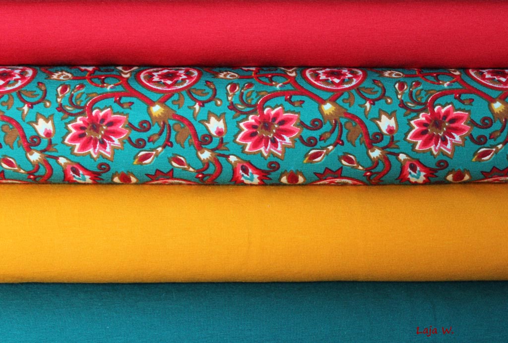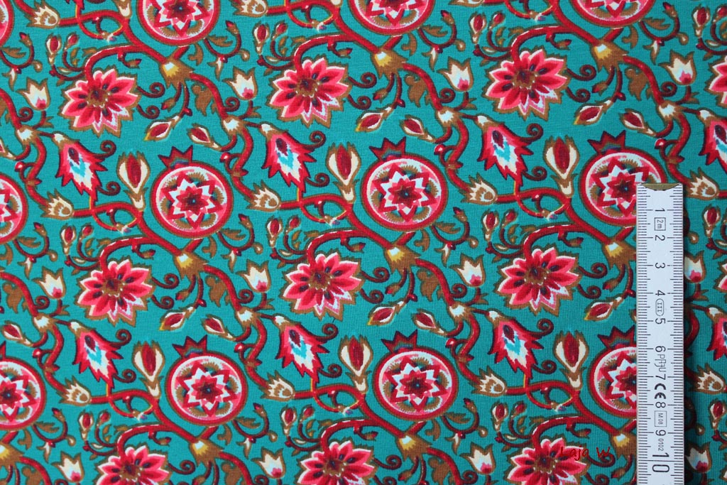 Hier biete ich Euch Jersey der Firma Stenzo mit Blumenranken in petrol an.