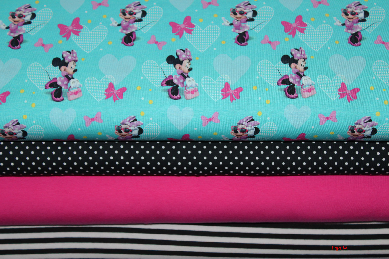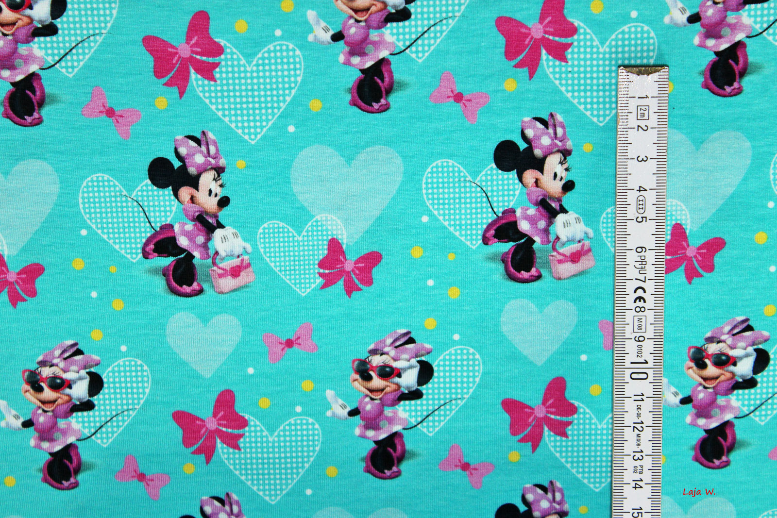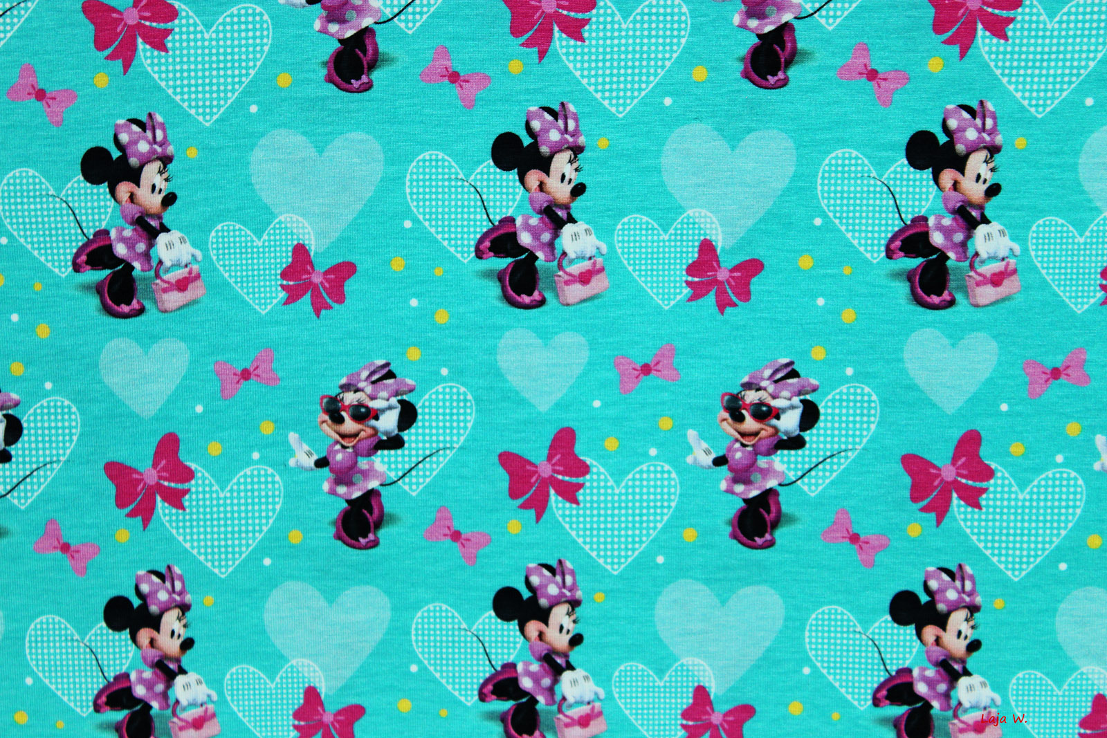 usw.Hier biete ich Euch einen tollen Lizenzjersey "Minnie Mouse" in einem leicht gedeckten Türkiston an.