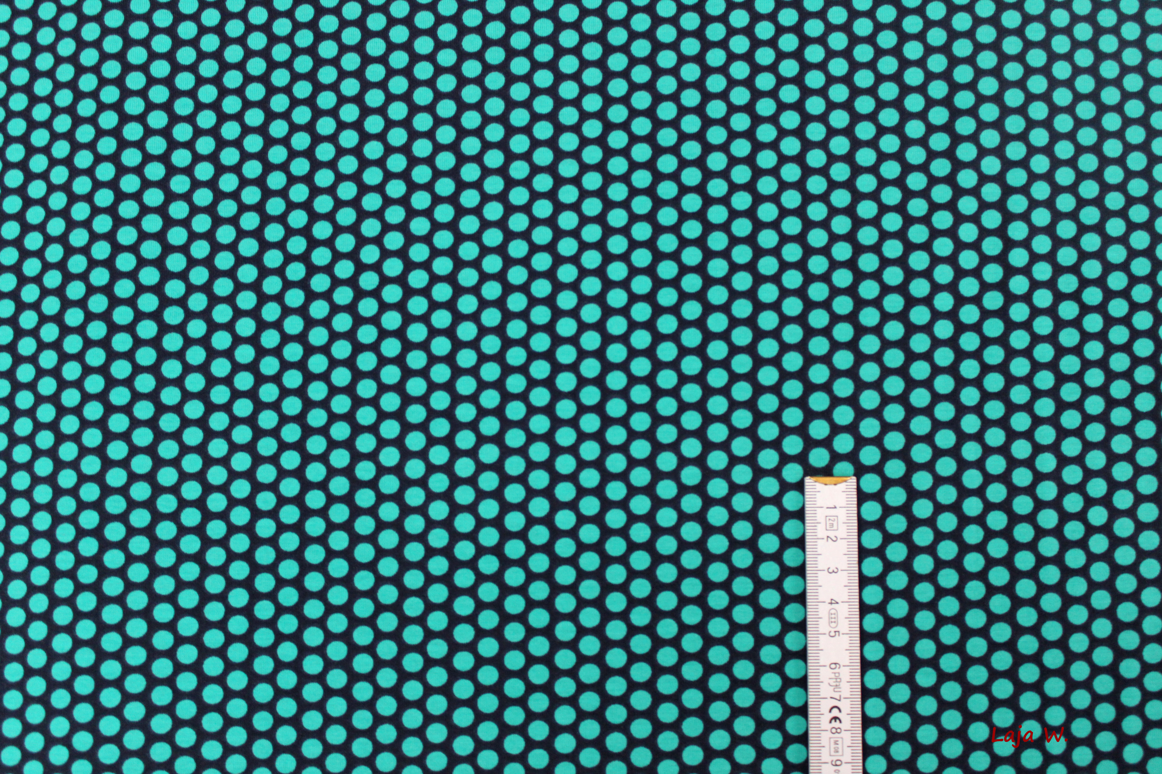 Hier biete ich Euch einen tollen Jersey mit vielen türkisen Punkten auf dunkelblauem Grund an.