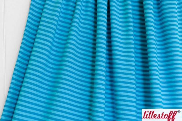 Hier biete ich Euch einen absolut traumhaften Ringeljersey der Firma Lillestoff in türkis/türkis an. Dieser Jersey ist ein perfekter Kombinationspartner zu vielen gemusterten Stoffen.
