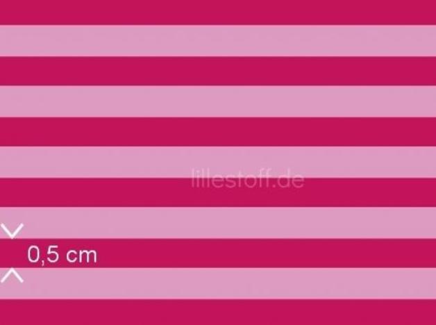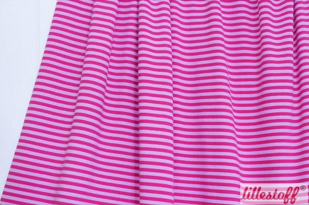 Hier biete ich Euch einen absolut traumhaften Ringeljersey der Firma Lillestoff in rosa/himbeer an. Dieser Jersey ist ein perfekter Kombinationspartner zu vielen gemusterten Stoffen.