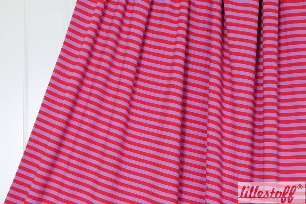usw.Hier biete ich Euch einen absolut traumhaften Ringeljersey der Firma Lillestoff in rot/flieder an. Dieser Jersey ist ein perfekter Kombinationspartner zu vielen gemusterten Stoffen.