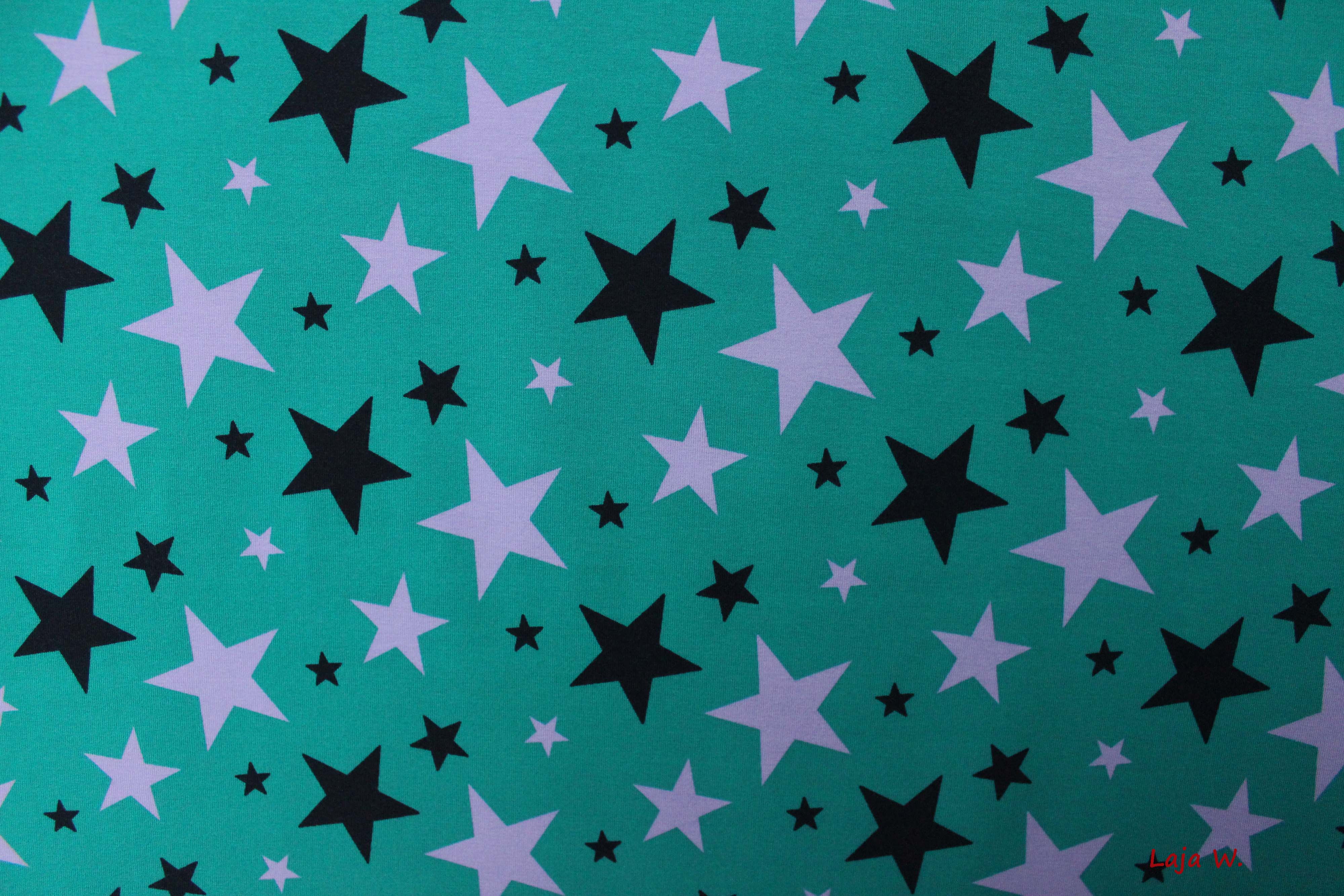 Hier biete ich Euch einen coolen Jersey mit verschieden großen Sternen an.Der Untergrund ist helleres petrol.