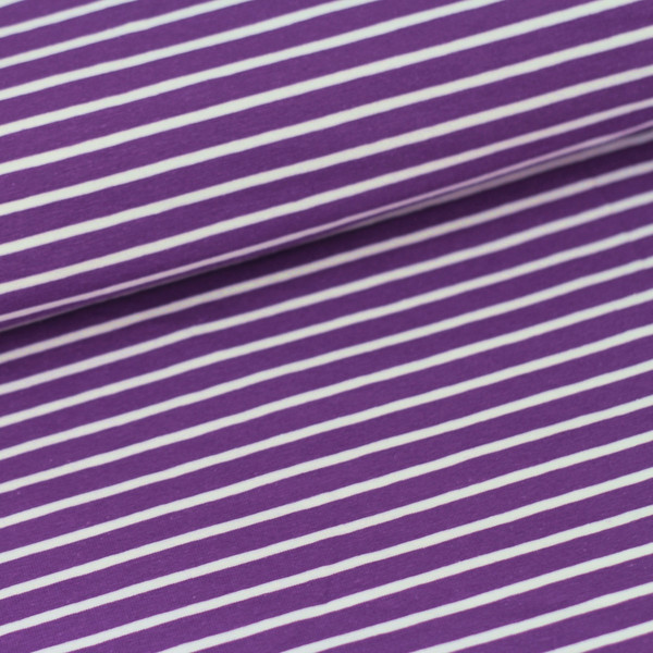 Hier biete ich Euch einen Ringel- Jersey vom Stoffonkel in der Farbe lila/weiß an.