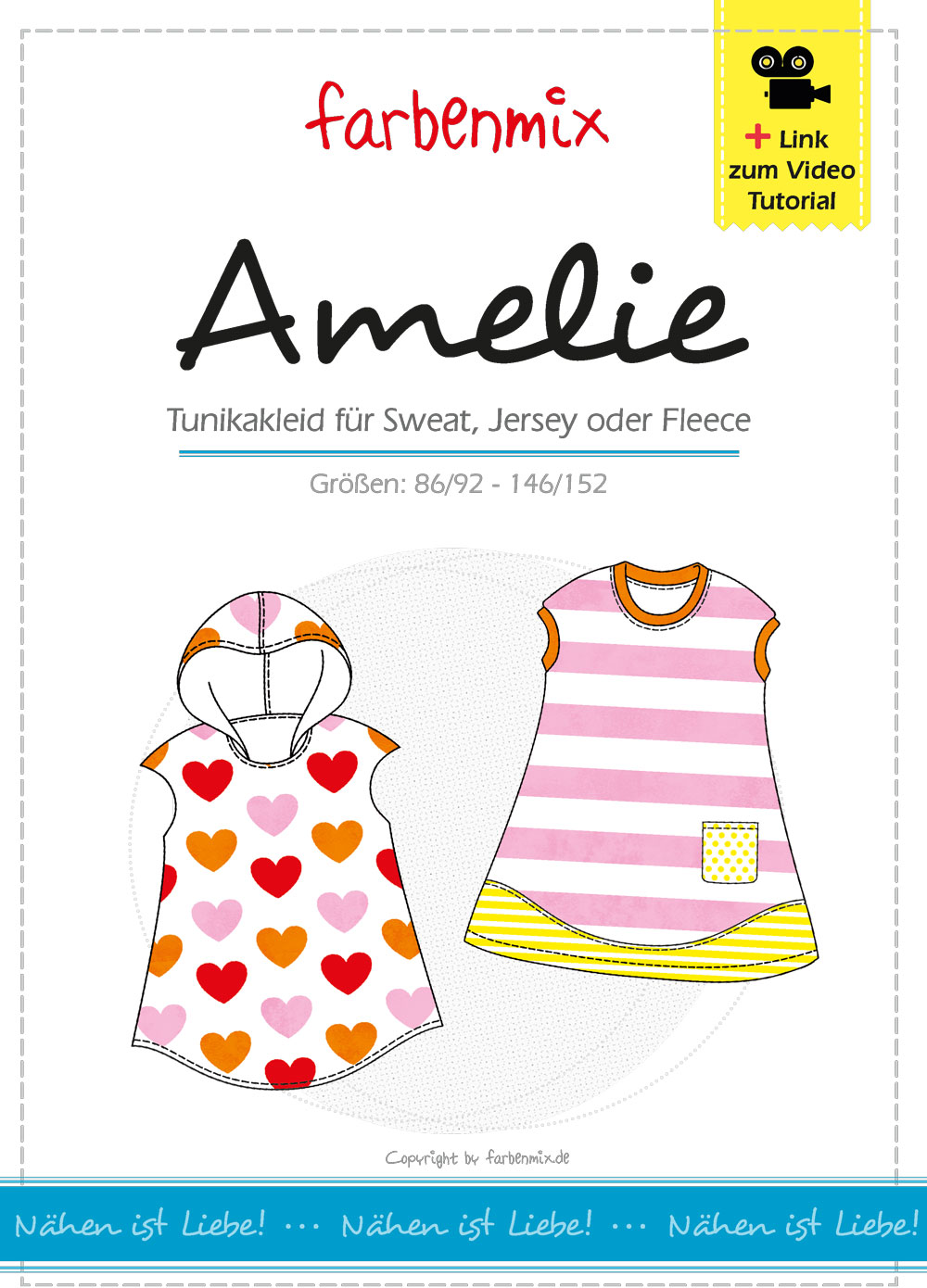 Mit nur wenigen Nähten lässt sich AMELIE schnell nähen und ist in der einfachsten Variante sogar mit nur vier Nähten ein tolles Projekt für Nähanfänger. AMELIE näht sich leicht, ist gleichzeitig aber sehr wandelbar und kann als Kleid oder Tunika, mit oder ohne Kapuze genäht werden. Offenkantig verarbeitet, sogar mit außen liegenden Nähten, bekommt es einen trendigen oder sogar sportlichen Look und ist ganz fix fertig. Klasse über Shirts oder Blusen, toll zu Leggins und schmalen Jeans, aber auch süß über einer bunten Strumpfhose oder Overknees. Ein echtes Lieblingsteil eben!