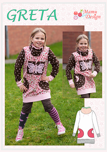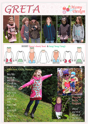 Greta ist ein Schnittmuster für ein lässiges, bequemes Langarmshirt oder Sweatshirt für Mädchen und Puppen, aber auch für Jungs.