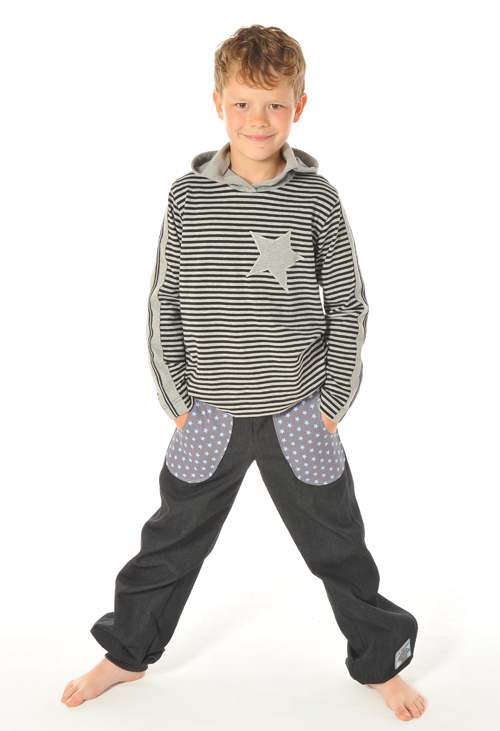 Modell C punktet mit rund eingesetzten Taschen und sportlicher Knieverstärkung... diese Variante werden Jungs besonders lieben.