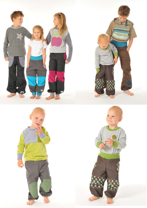 Modell A, die Basic Hose kann aus allen Materialien genäht werden. Die beigefügten Stern- und Apfelapplikationen peppen uni Stoffe klasse auf!