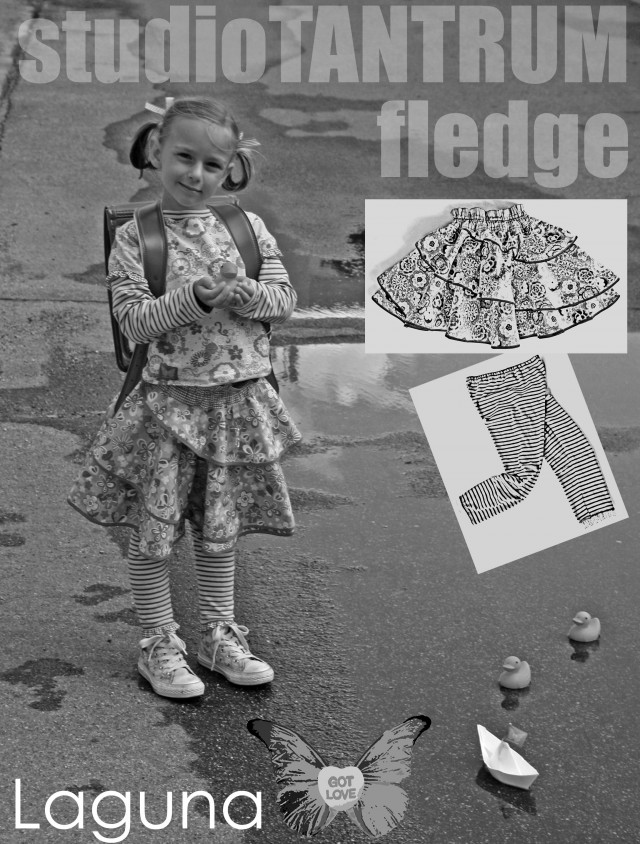 “Laguna” ist das spanische Wort für “Lagune”, dort wo der See in das Land hinein wirbelt und mit dem Land kommuniziert. Laguna Beach ist ein kleiner Seeort, wo der Mensch auch stundenlang mit dem See kommunizieren kann. Der Rock LAGUNA basiert auf dem klassischen Kreisrock, jedoch mit einem neuen Dreh. LAGUNA auf Knie- bzw. Mini-Rock-Länge ist ein frecher Hingucker, der mit den Leggins (“Leggunas”) den aktiven Mädchen viele Baumkletter- und Spielplatz-Stunden erlaubt.