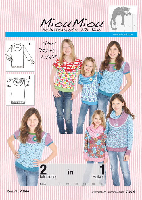 Das ist genial und cool: Unseren Topseller Longshirt/ Smmershirt "Luna" V 1055 gibt es jetzt auch für Kids: "Mini- Luna" V 9010... mit allen Finessen des grossen Vorbilds: eingesetzte Passe, halsferner Rolli oder Ausschnitt mit Strickbündchen. Auch hier ist das Sommershirt etwas kürzer geschnitten und im Mustermix einfach unwiderstehlich!