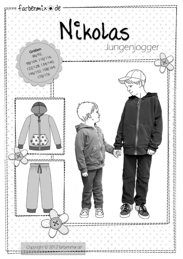 Viele starke Kids haben bei gekauften Joggern das Problem, dass in der passenden Länge die Jacke zu eng geschnitten ist oder in der passenden Weite die Hose zu lang. Dies hat nun ein Ende, denn mit dem Jungenjogger NIKOLAS könnt ihr eurem Kind den perfekt sitzenden Anzug selber nähen! Er ist bereits in bequemer Weite geschnitten und somit auch für kräftige Kinder bestens geeignet. Da er aus dehnbaren Stoffen genäht wird und der Taillenbund der Hose mit einem Gummizug versehen ist, ist der Jogger ein richtiges Wohlfühlteil.