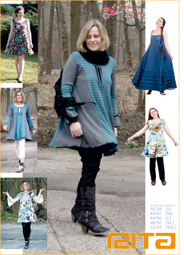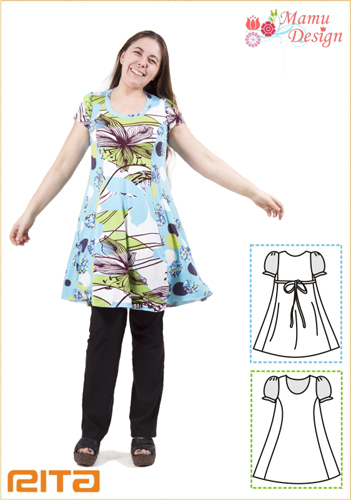 RITA kann als Tunika, als Top, als Maxikleid, in Lagenlook genäht werden. Besonders eignen sich auch großgemusterte Stoffe.