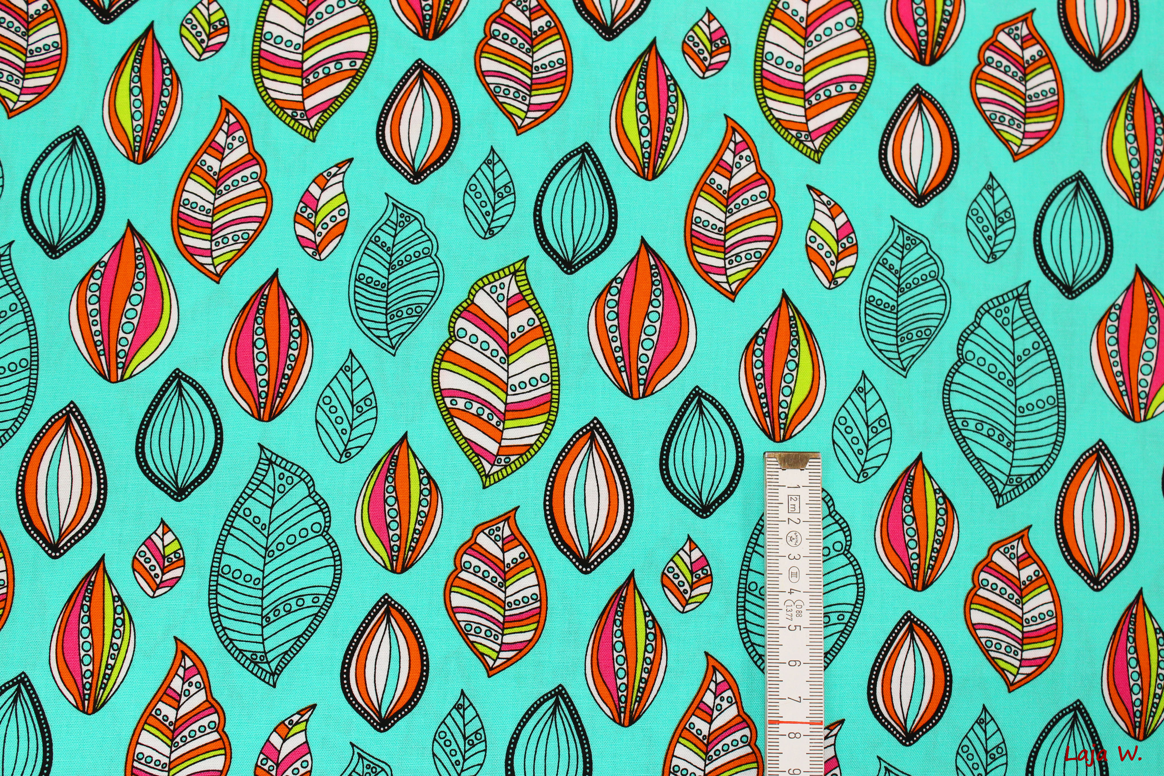 Hier biete ich Euch einen wundervollen Designerstoff aus dem Hause von Robert Kaufmann mit trendigen bunten Blättern an.