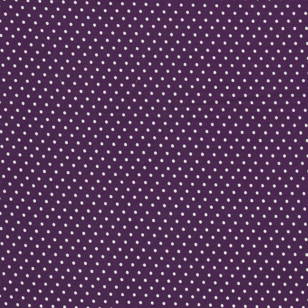 Hier biete ich Euch einen absolut traumhaften Stretch-Jersey mit kleinen weißen Punkten an. Der Untergrund ist ein wunderschönes kräftiges lila. Die einzelnen Punkte sind ca. 3 mm groß.