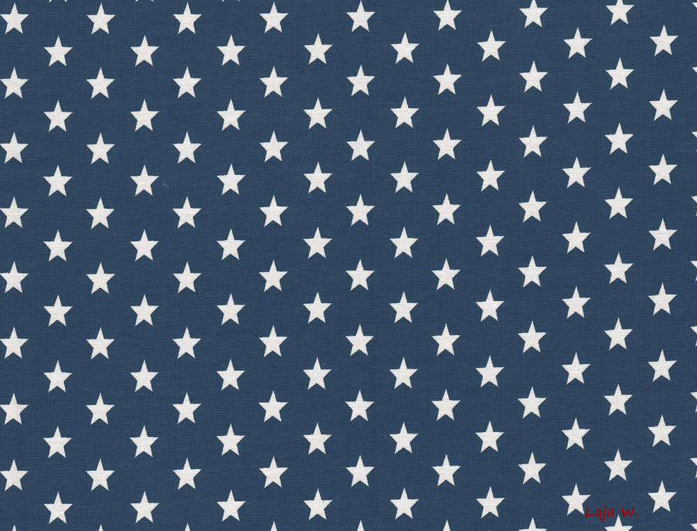 Hier biete ich Euch einen absolut traumhaften Stretch-Jersey mit weißen Sternen an. Der Untergrund ist jeansblau. Die einzelnen Sterne sind ca. 1 cm groß.