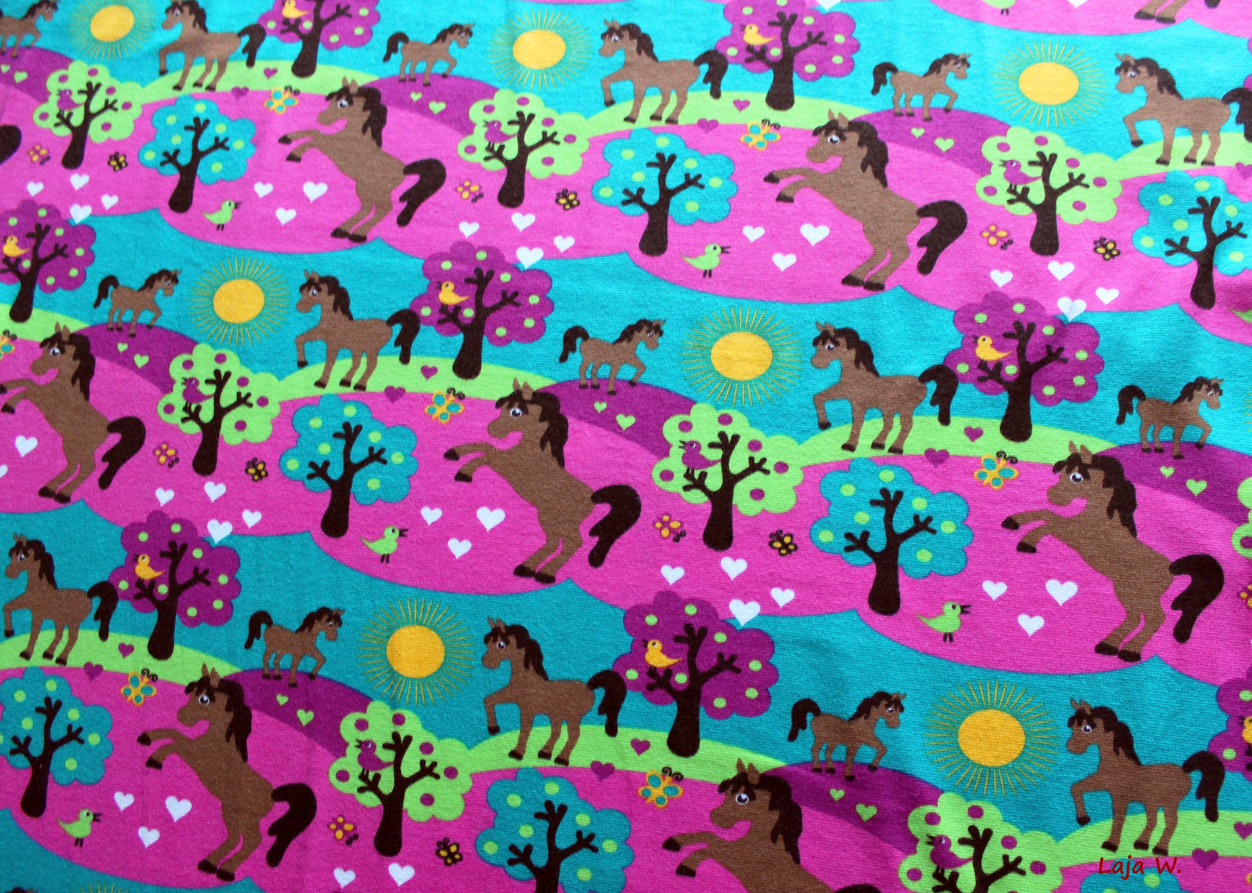 Hier biete ich Euch einen absolut traumhaften Stretch-Jersey aus Schweden mit süßen Pferden an.