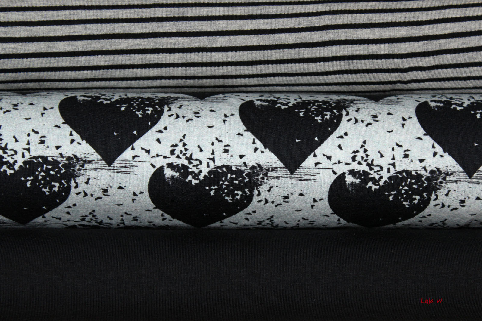 usw.Hier biete ich Euch einen hochwertigen und trendigen ganz leichten Sweat "Lost Heart" mit einer leicht flauschigen Rückseite der Firma Hilco an
