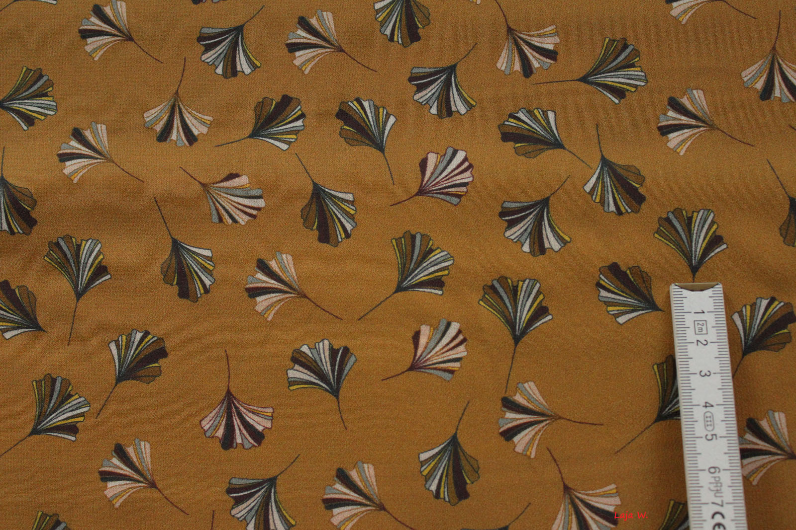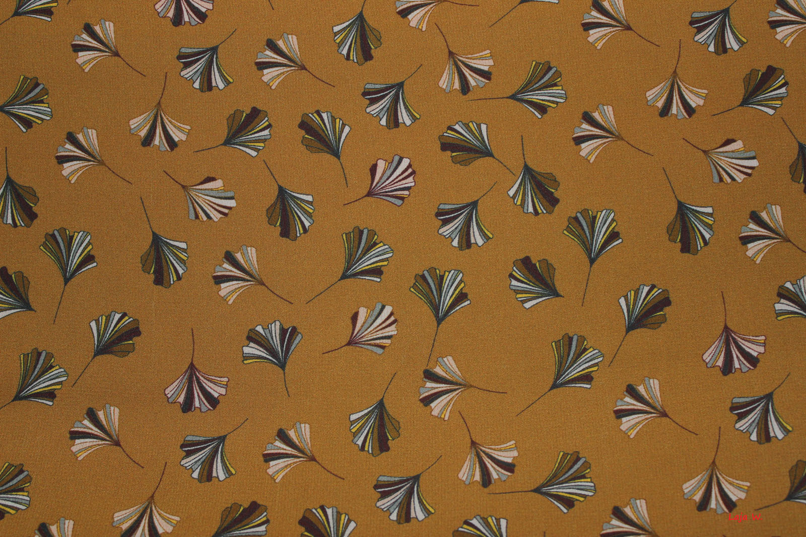 Sehr leichter, feiner Viskosekreppdruck mit Ginkoblättern. Wunderbar für leichte Blusen, luftige Tuniken, Schals und andere Accessoires.