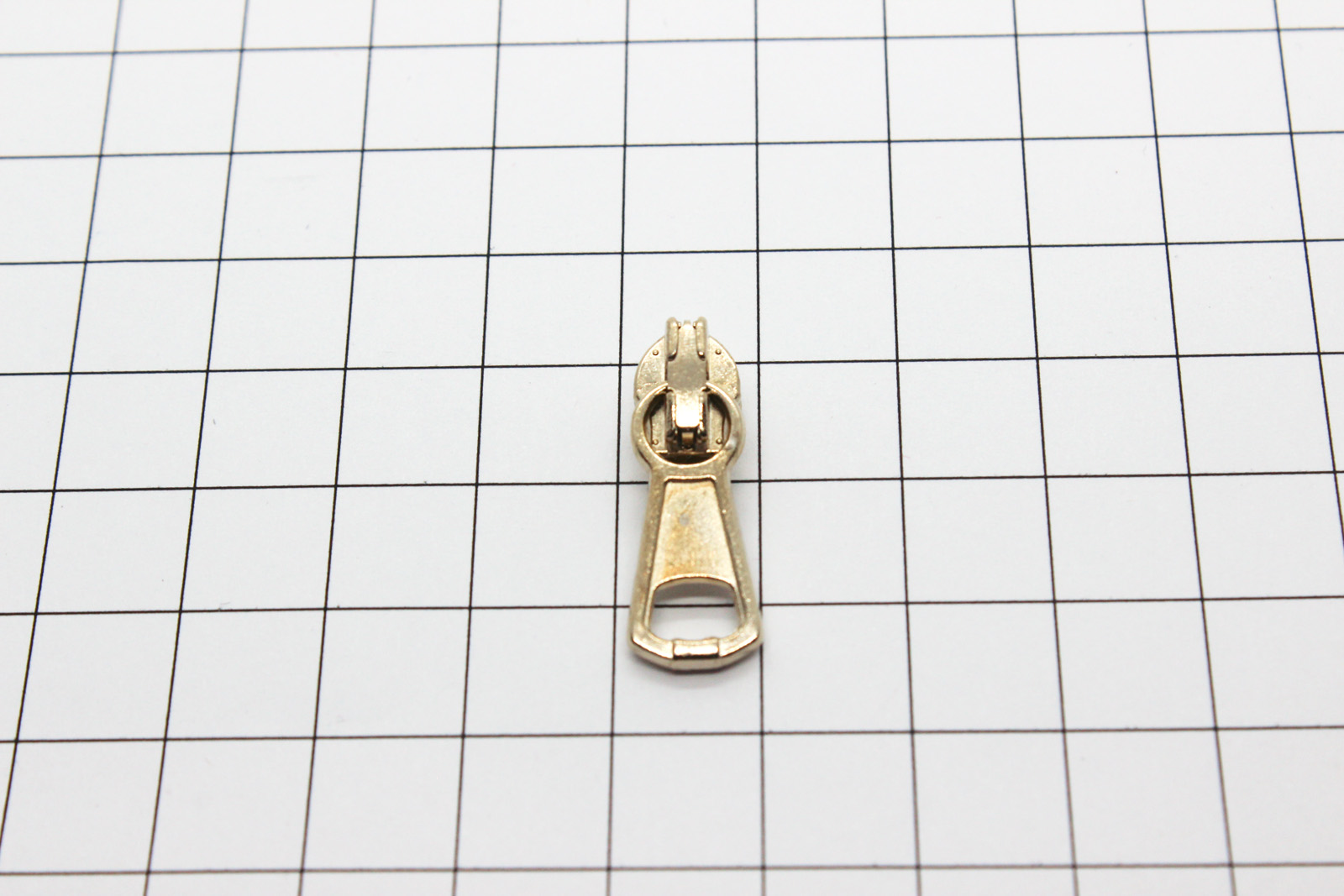 Bitte beachten, dass die Schieber unter dieser Rubrik NUR für die schmalen Reißverschlüsse passen und nicht für die breiten Reißverschlüsse geeignet sind. Auf dem zweiten Foto sieht man den Schieber auf einer Gitternetzlinie, so dass man eine bildliche Vorstellung über die Größe des Schiebers hat. Ein Kästchen hat eine Größe von 1 cm x 1 cm.