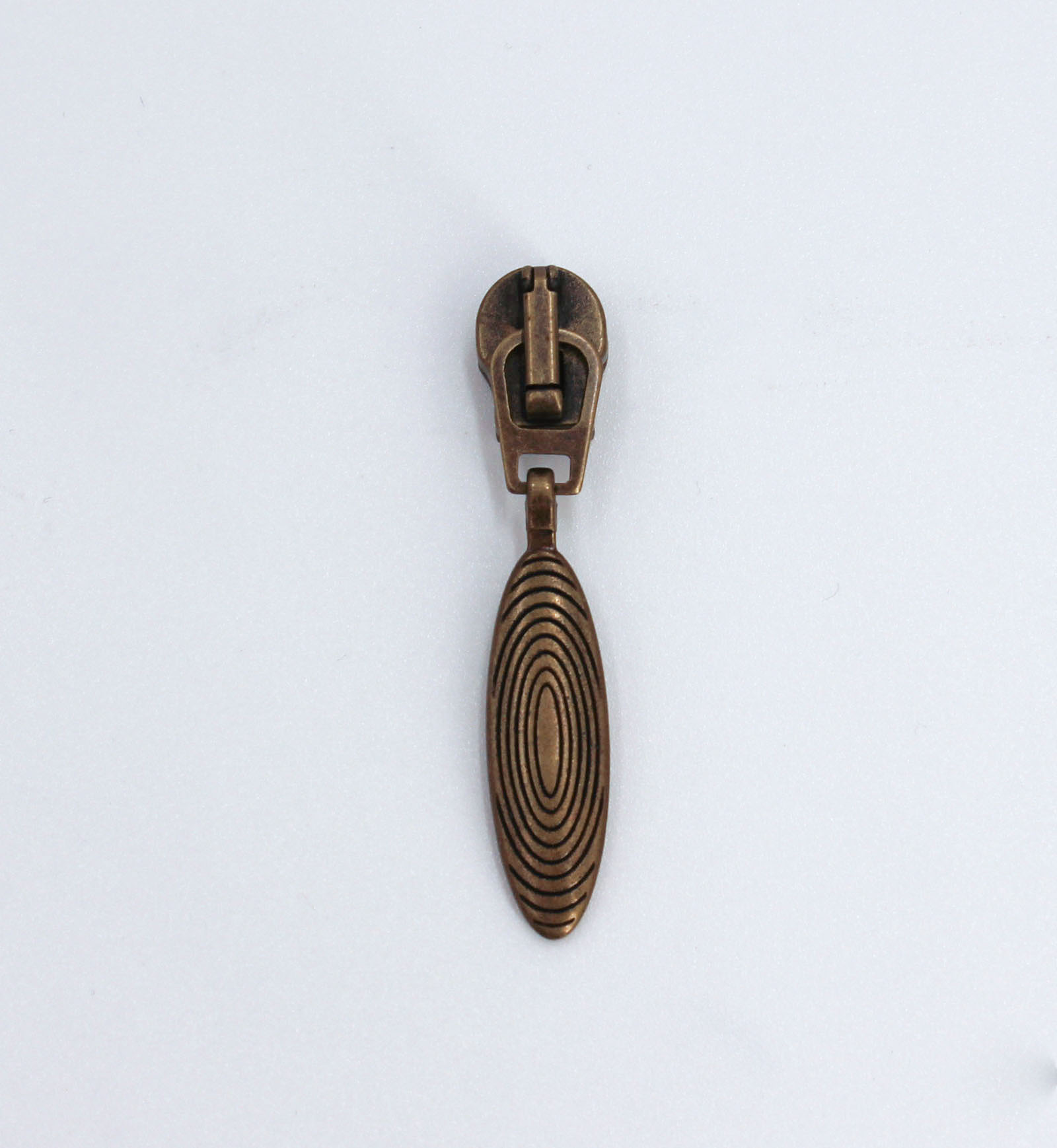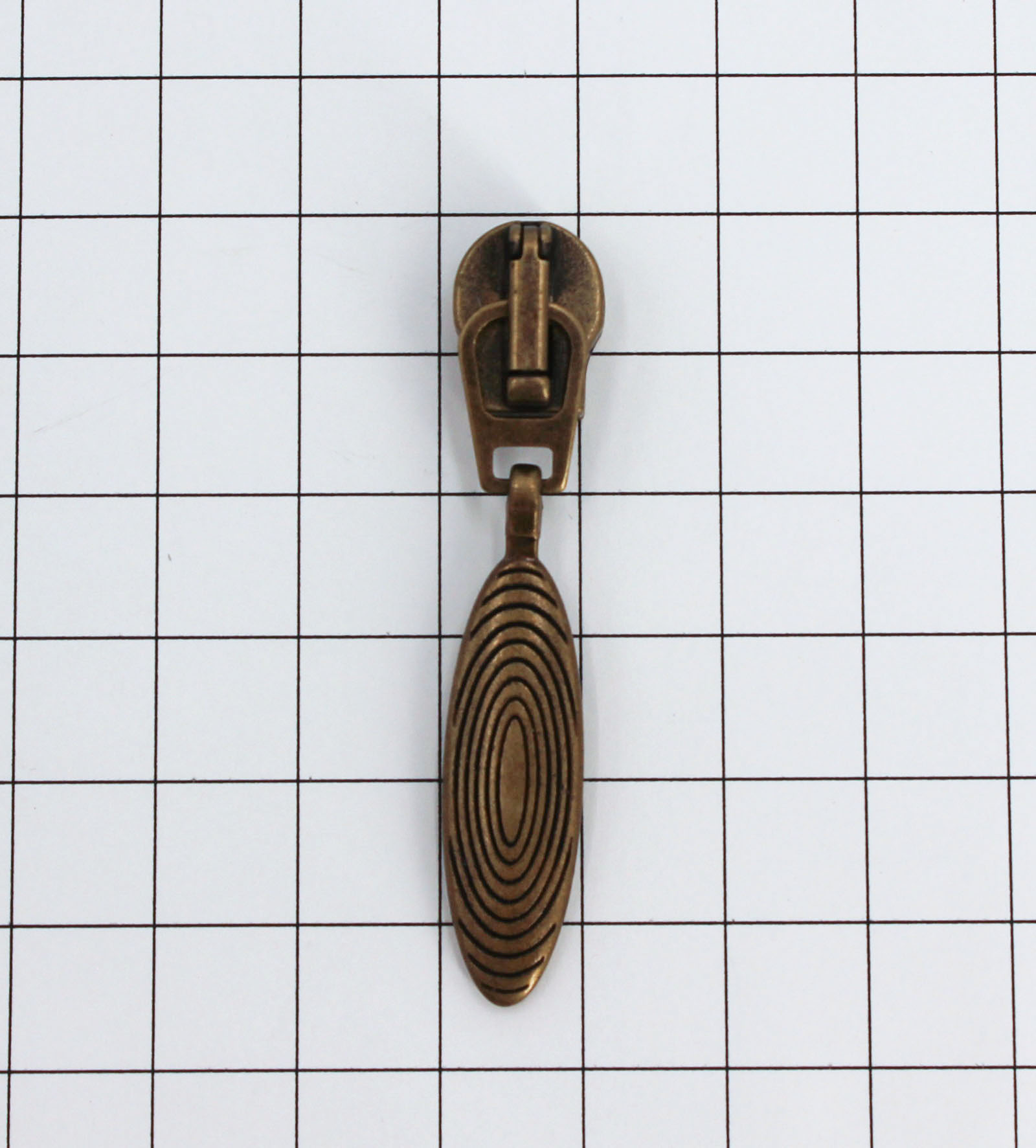 Zusätzlicher Automatikschieber Maja am Zwischenglied messing-antik zu unserer Meterware "Reißverschluss metallisiert breit"