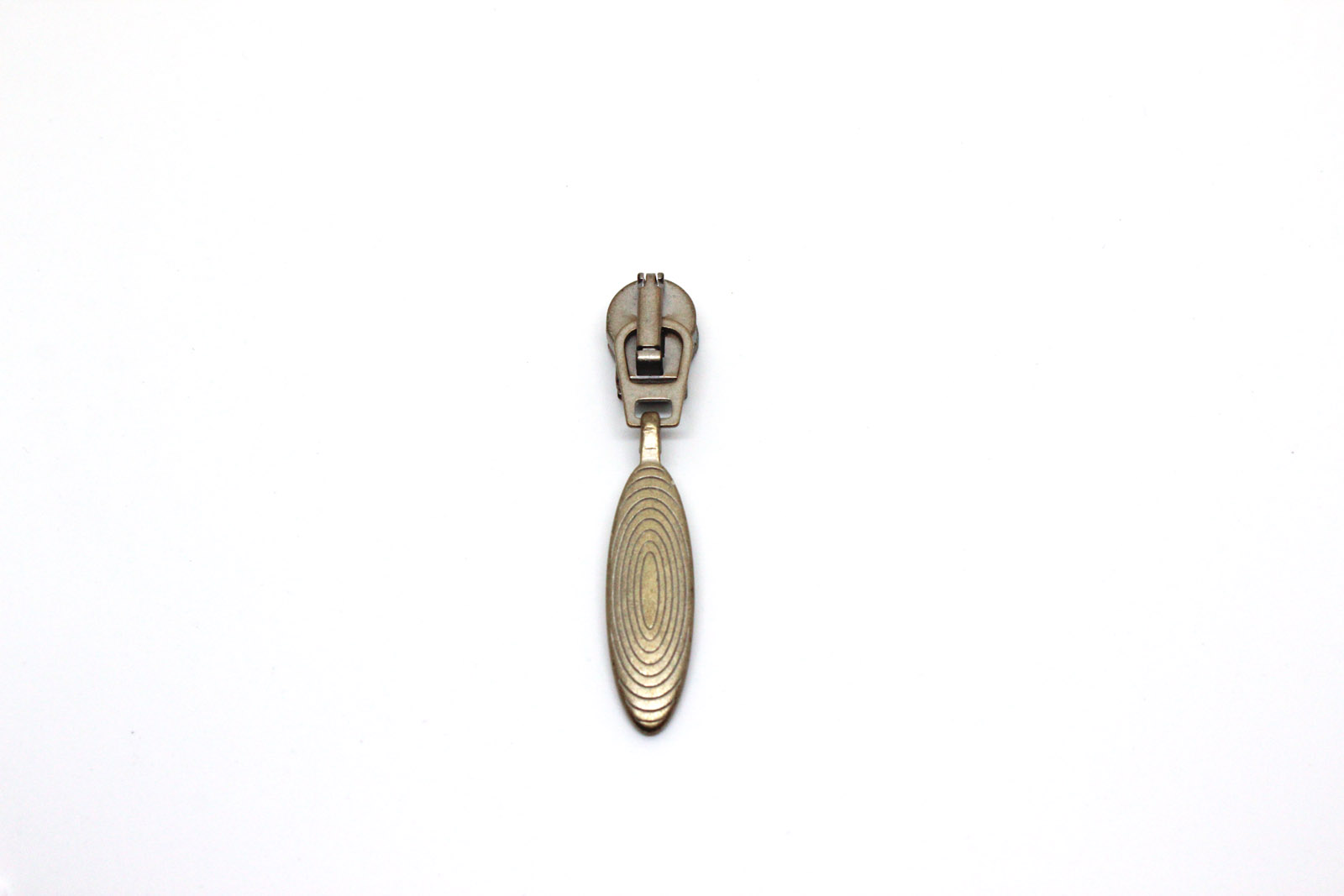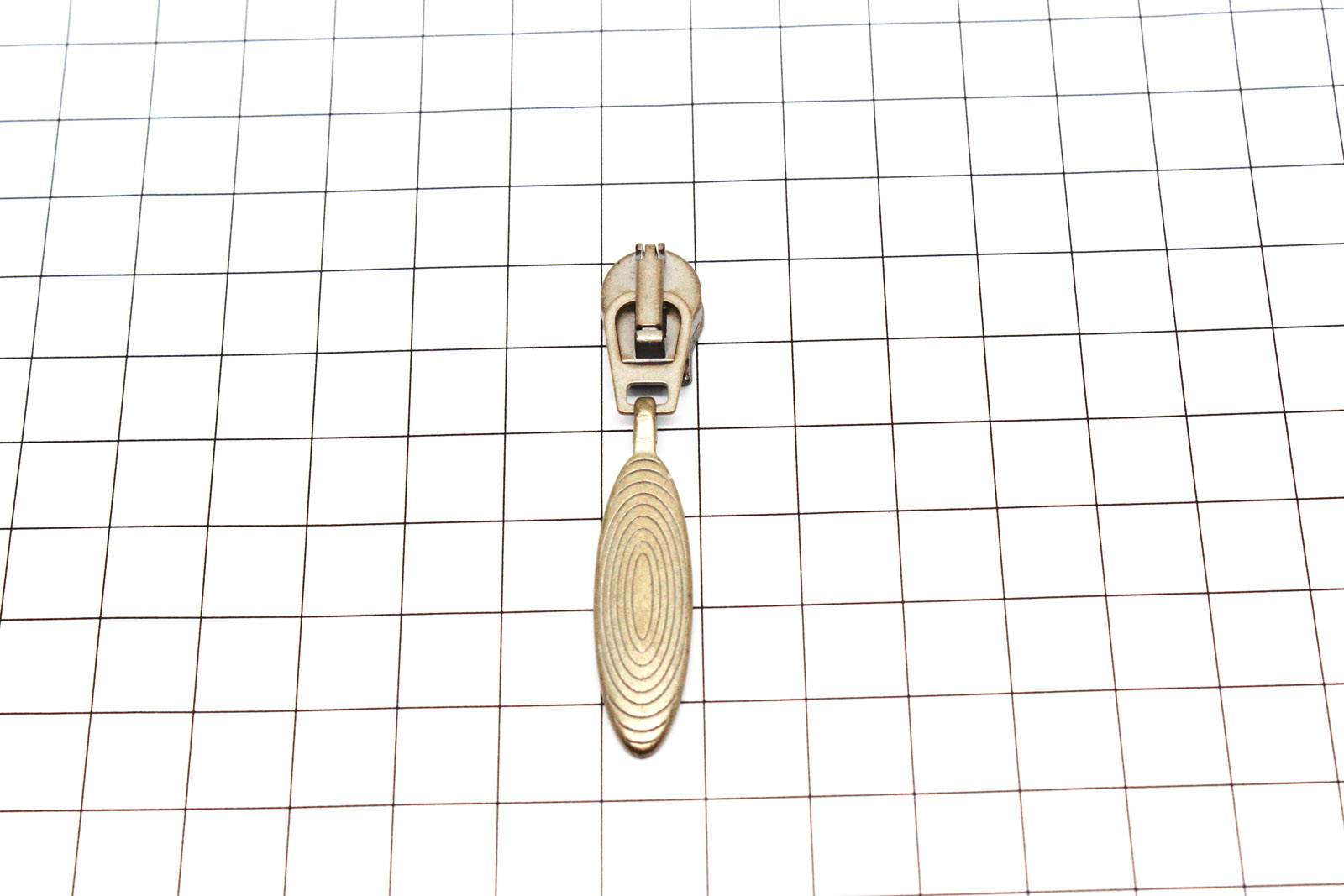 Zusätzlicher Automatikschieber Maja am Zwischenglied silber - messing - matt zu unserer Meterware "Reißverschluss metallisiert breit"