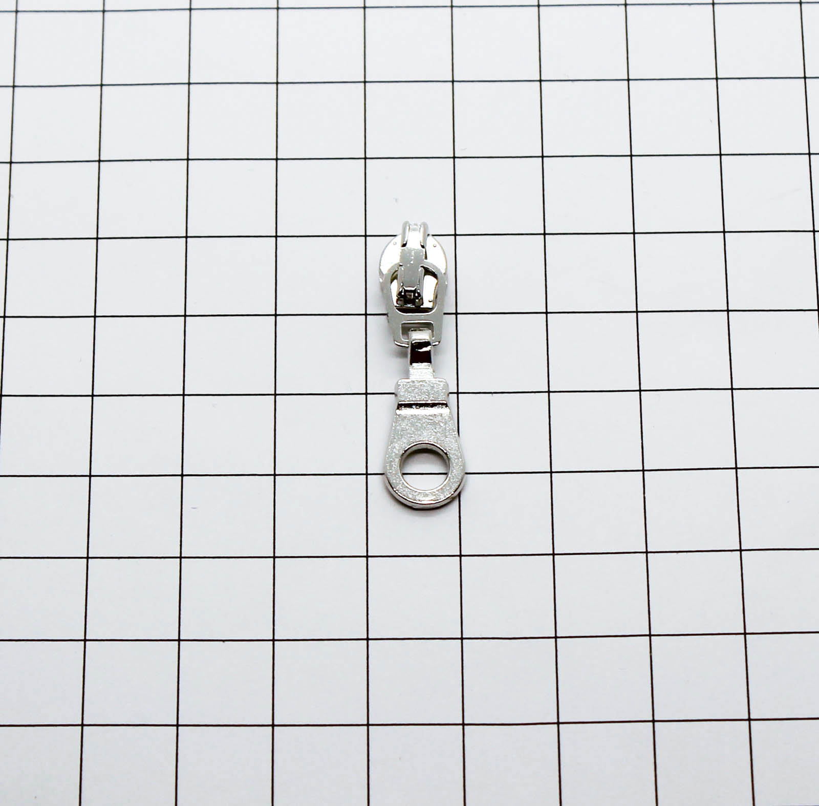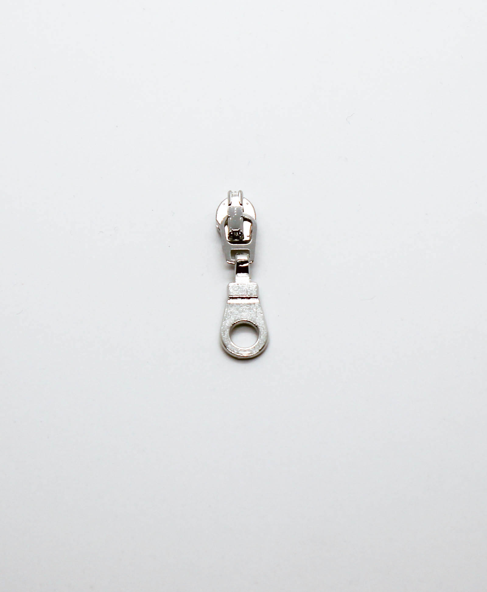 Zusätzlicher Automatikschieber am Zwischenglied mit Anhänger Donut silber zu unserer Meterware "Reißverschluss metallisiert schmal"