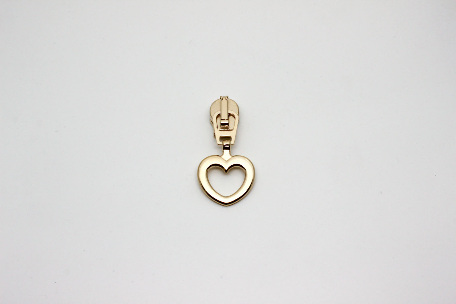 Zusätzlicher Automatikschieber am Zwischenglied mit Anhänger Herz silber zu unserer Meterware "Reißverschluss metallisiert breit"
