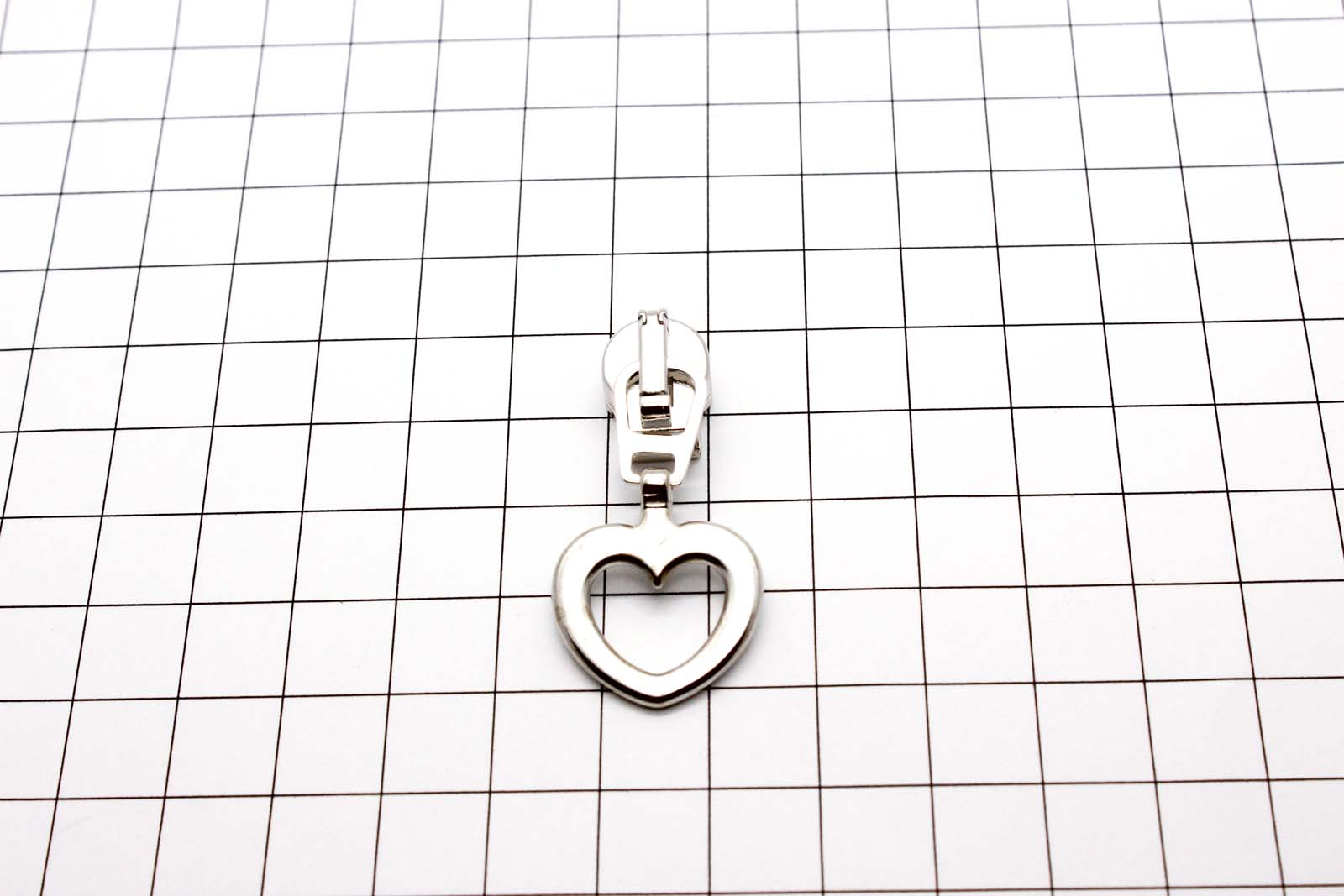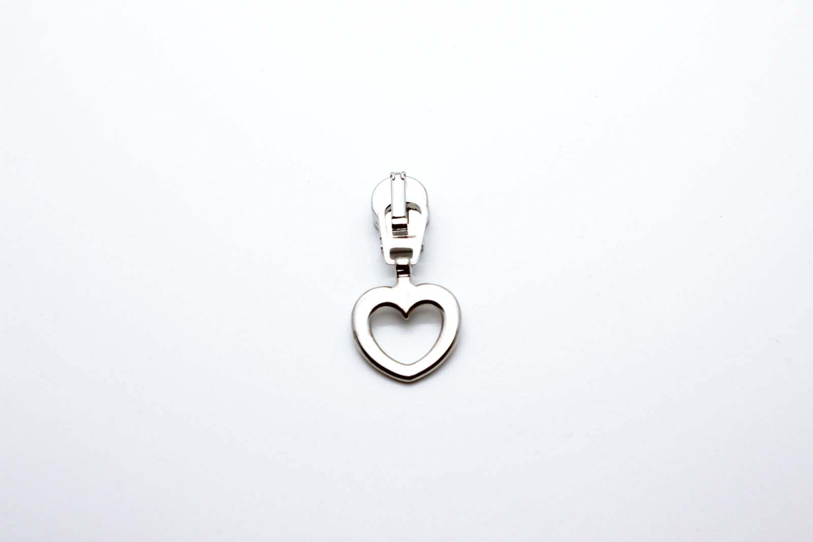 Zusätzlicher Automatikschieber am Zwischenglied mit Anhänger Herz silber zu unserer Meterware "Reißverschluss metallisiert breit"