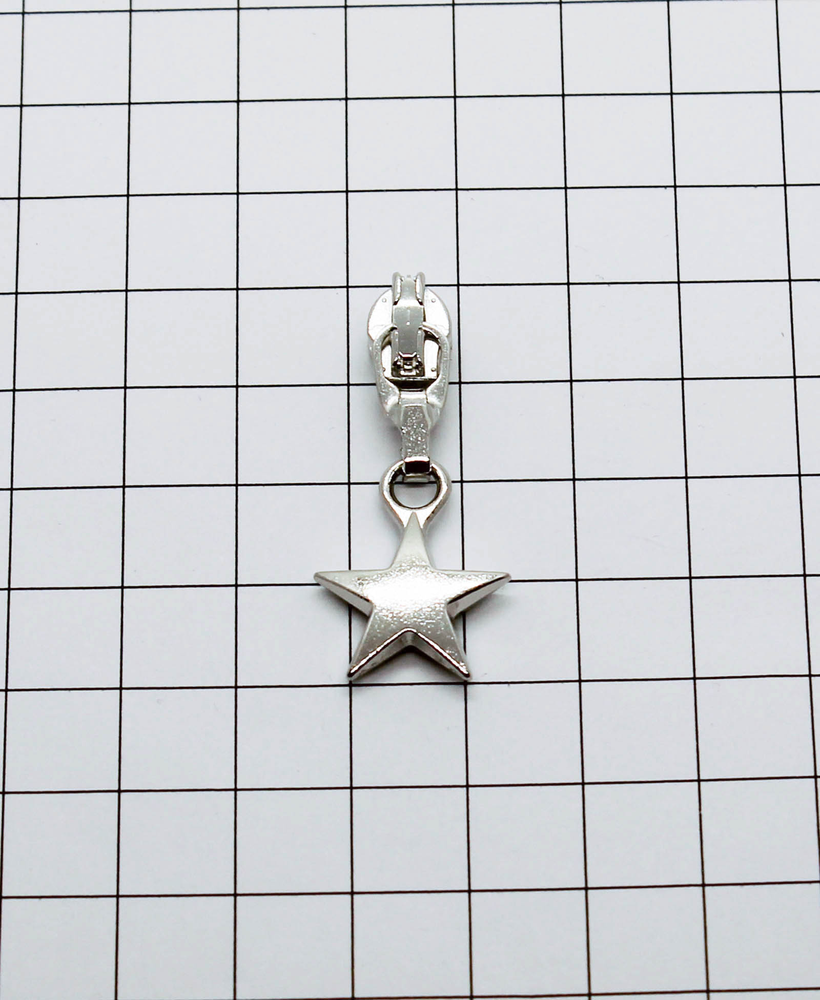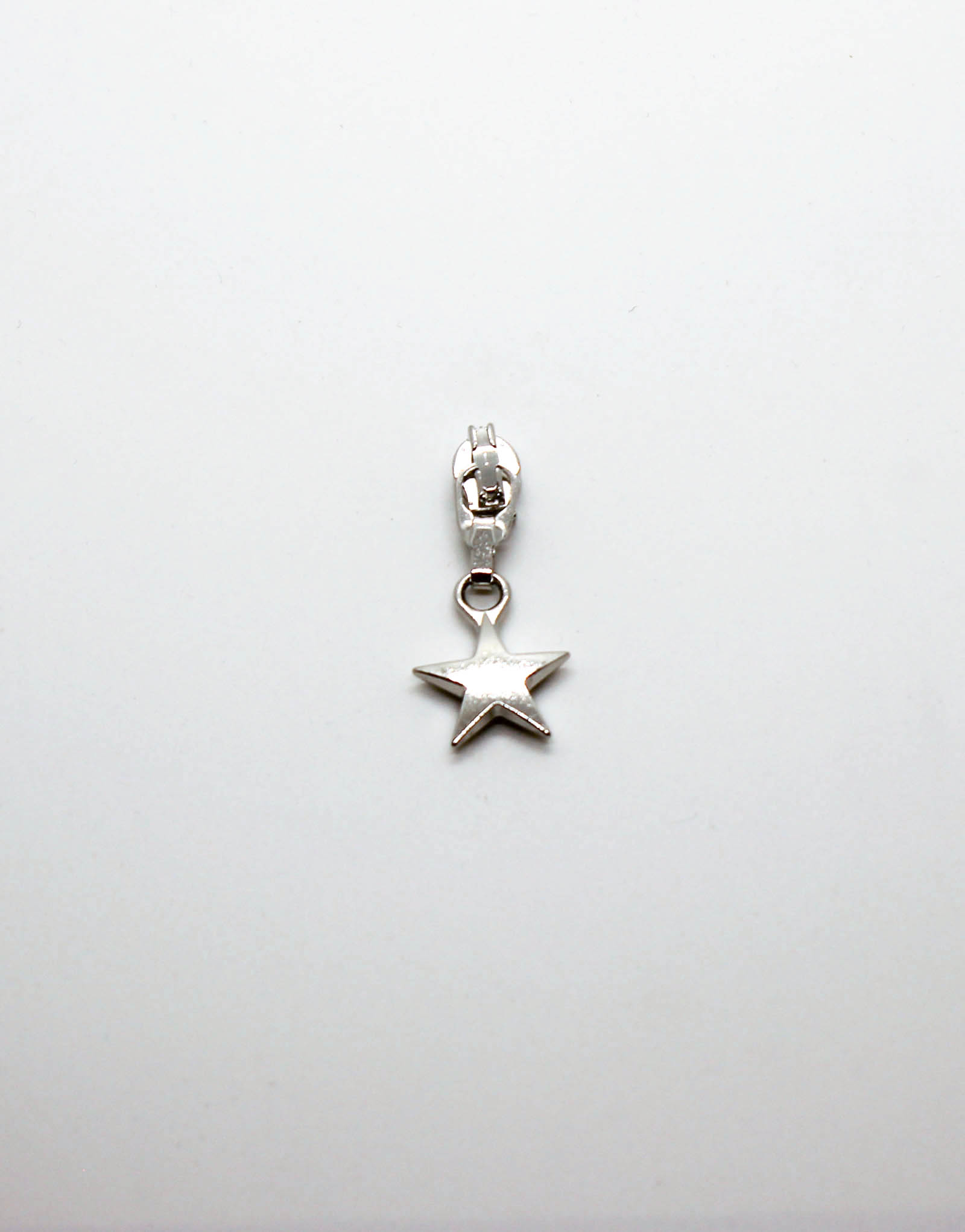Zusätzlicher Automatikschieber am Zwischenglied mit Anhänger Stern silber zu unserer Meterware "Reißverschluss metallisiert schmal"