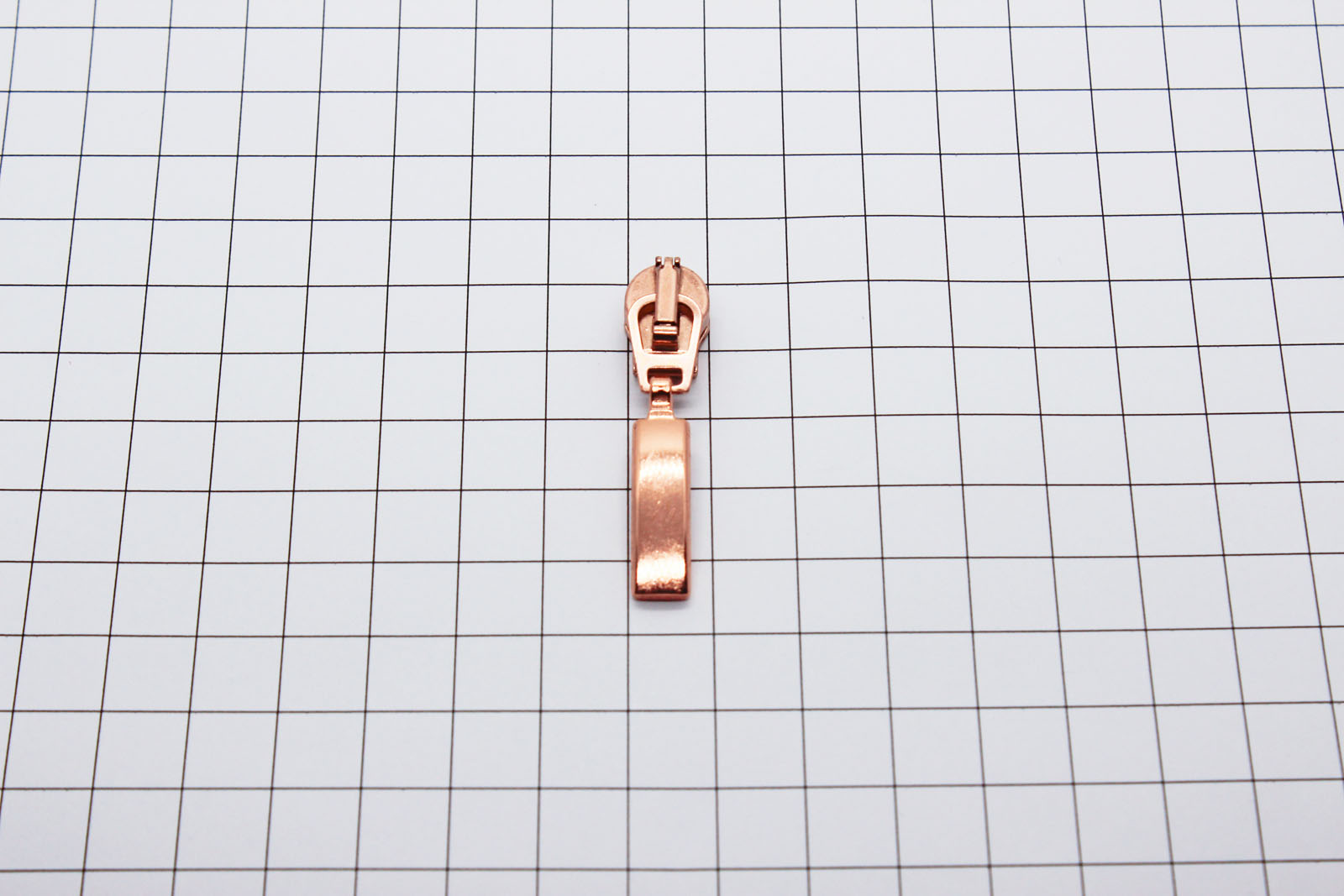 Zusätzlicher Automatikschieber mit Bogen groß am Zwischenglied kupfer zu unserer Meterware "Reißverschluss metallisiert breit"