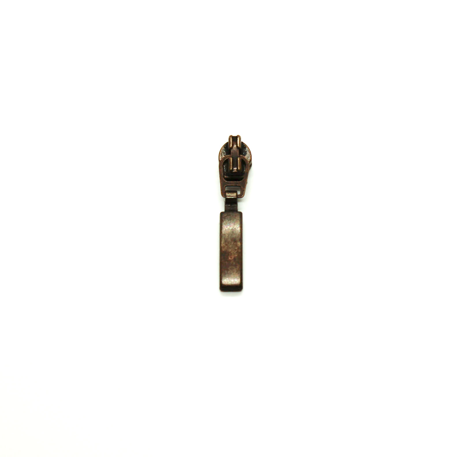 Zusätzlicher Automatikschieber mit Bogen klein am Zwischenglied messing-antik zu unserer Meterware "Reißverschluss metallisiert schmal"