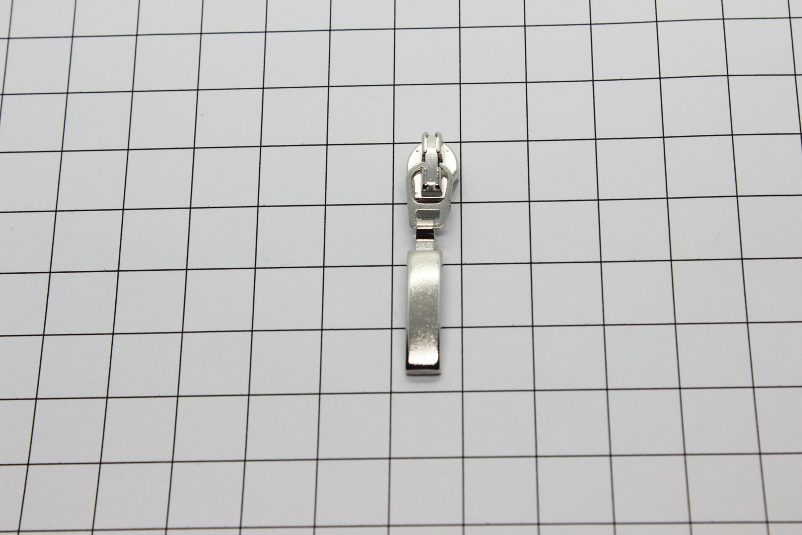 Zusätzlicher Automatikschieber mit Bogen klein am Zwischenglied silber zu unserer Meterware "Reißverschluss metallisiert schmal"