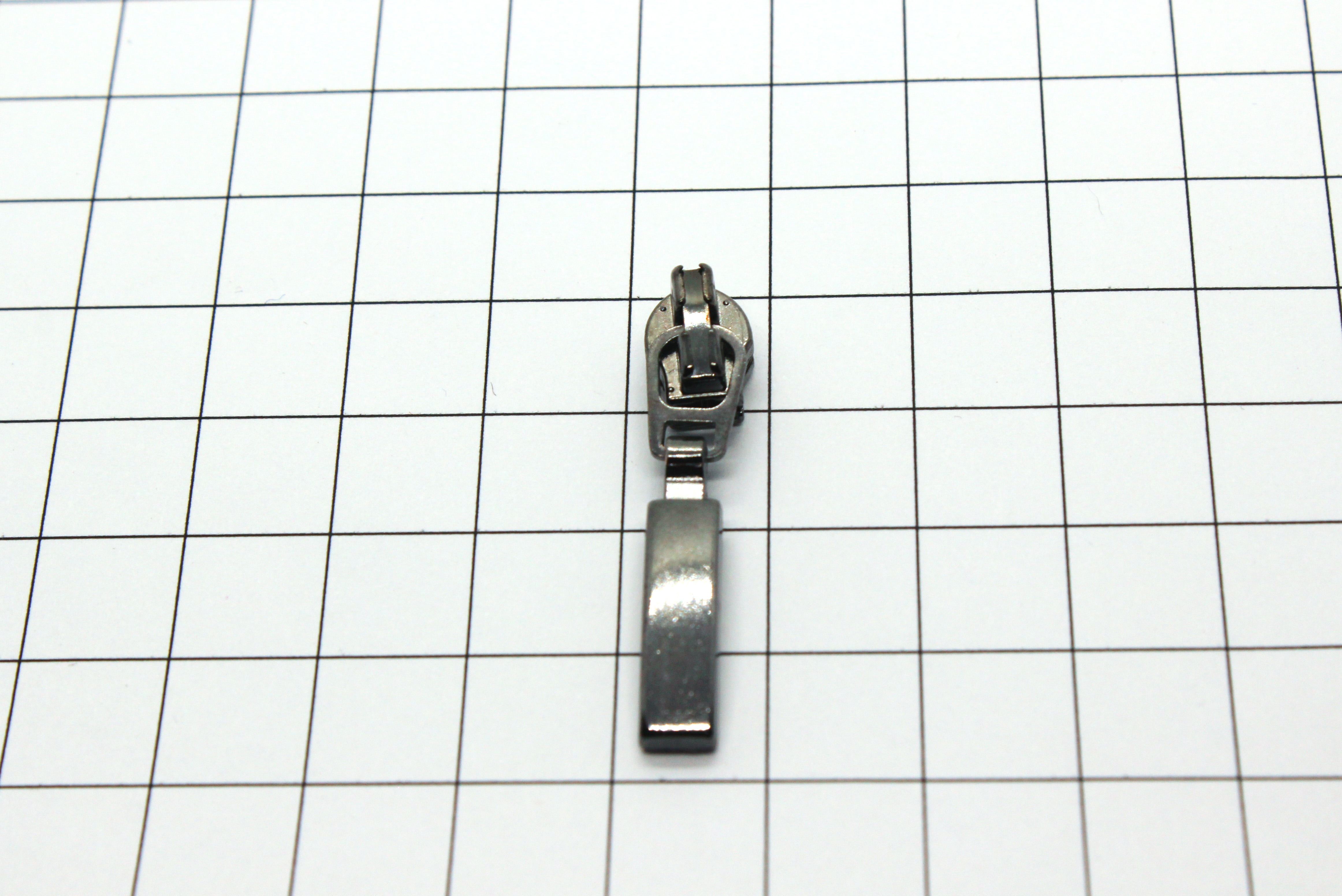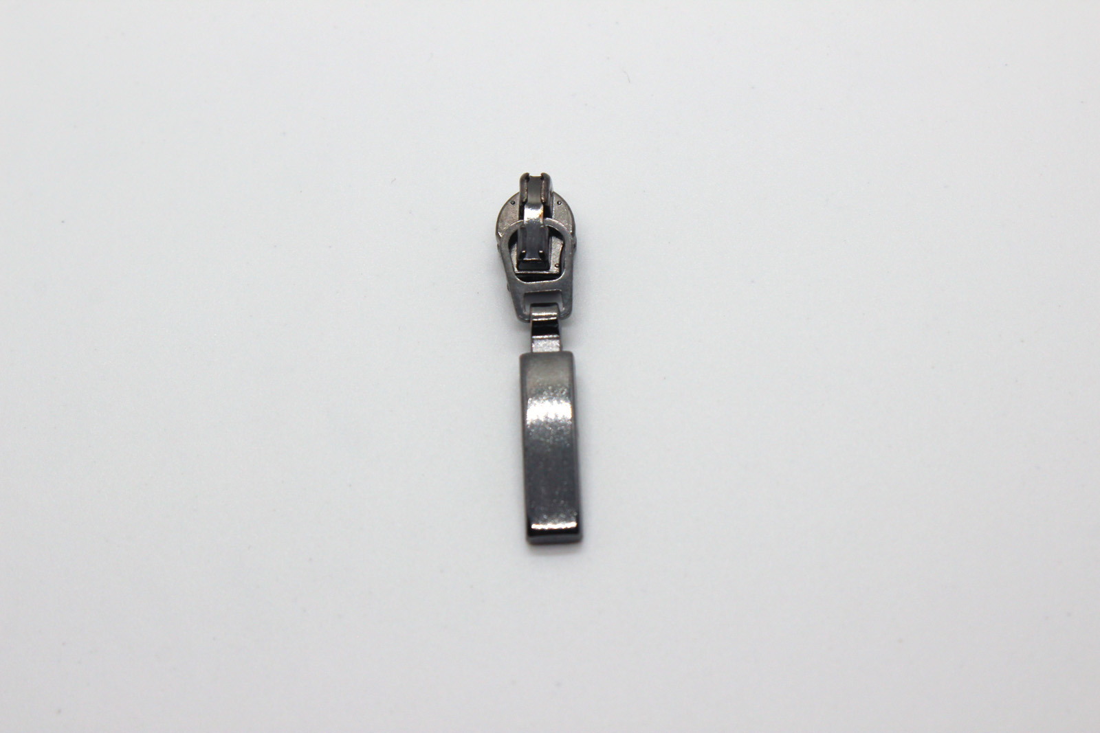 Zusätzlicher Automatikschieber mit Bogen klein am Zwischenglied titan zu unserer Meterware "Reißverschluss metallisiert schmal"