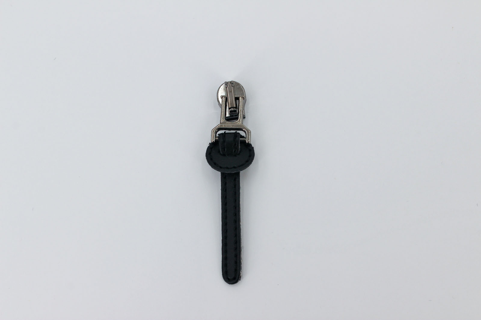 Zusätzlicher Automatikschieber mit Kunstlederanhänger am Zwischenglied titan/schwarz zu unserer Meterware "Reißverschluss metallisiert breit"