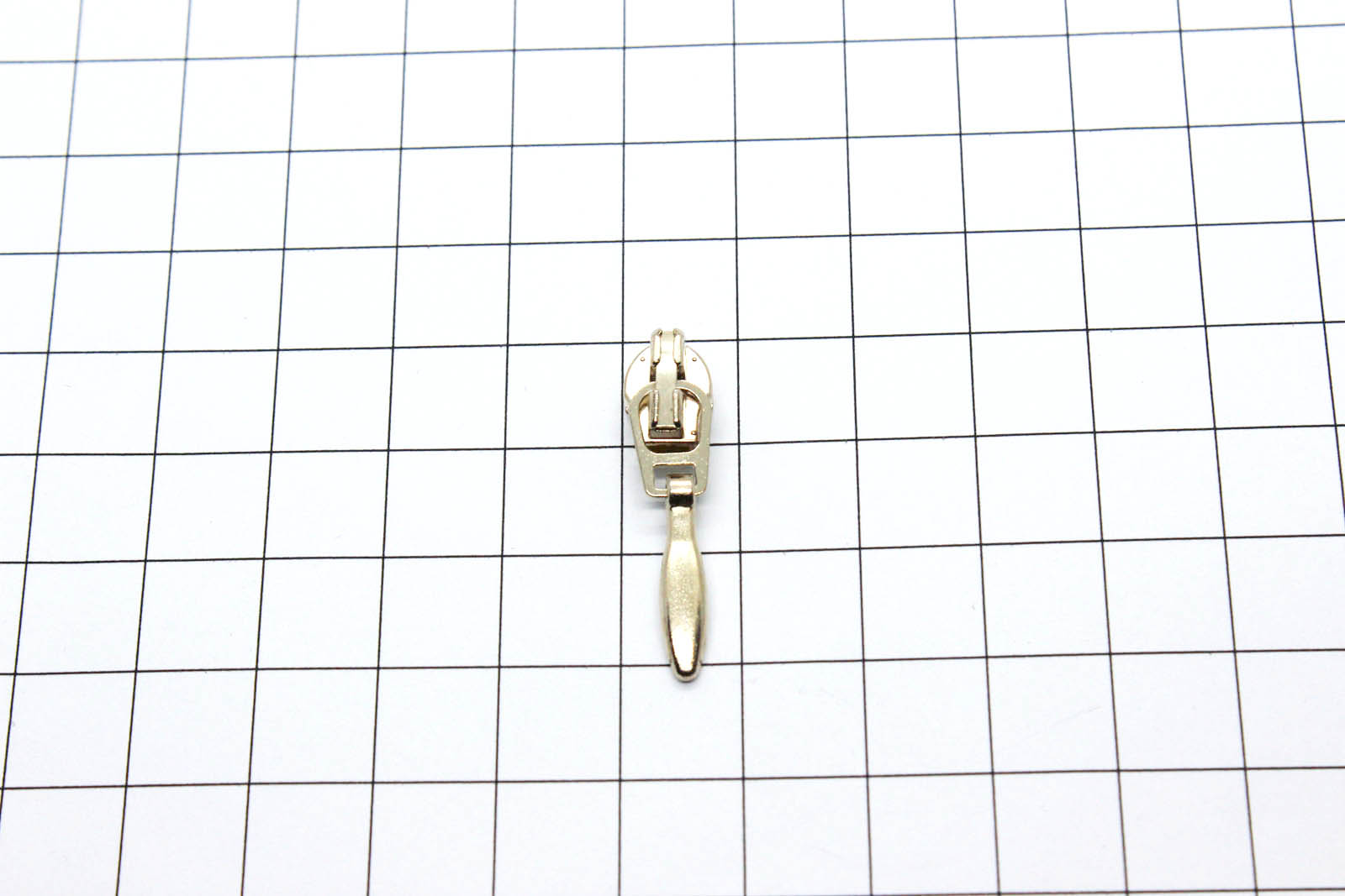 Zusätzlicher Automatikschieber Tropfen klein am Zwischenglied eisgold zu unserer Meterware "Reißverschluss metallisiert schmal"