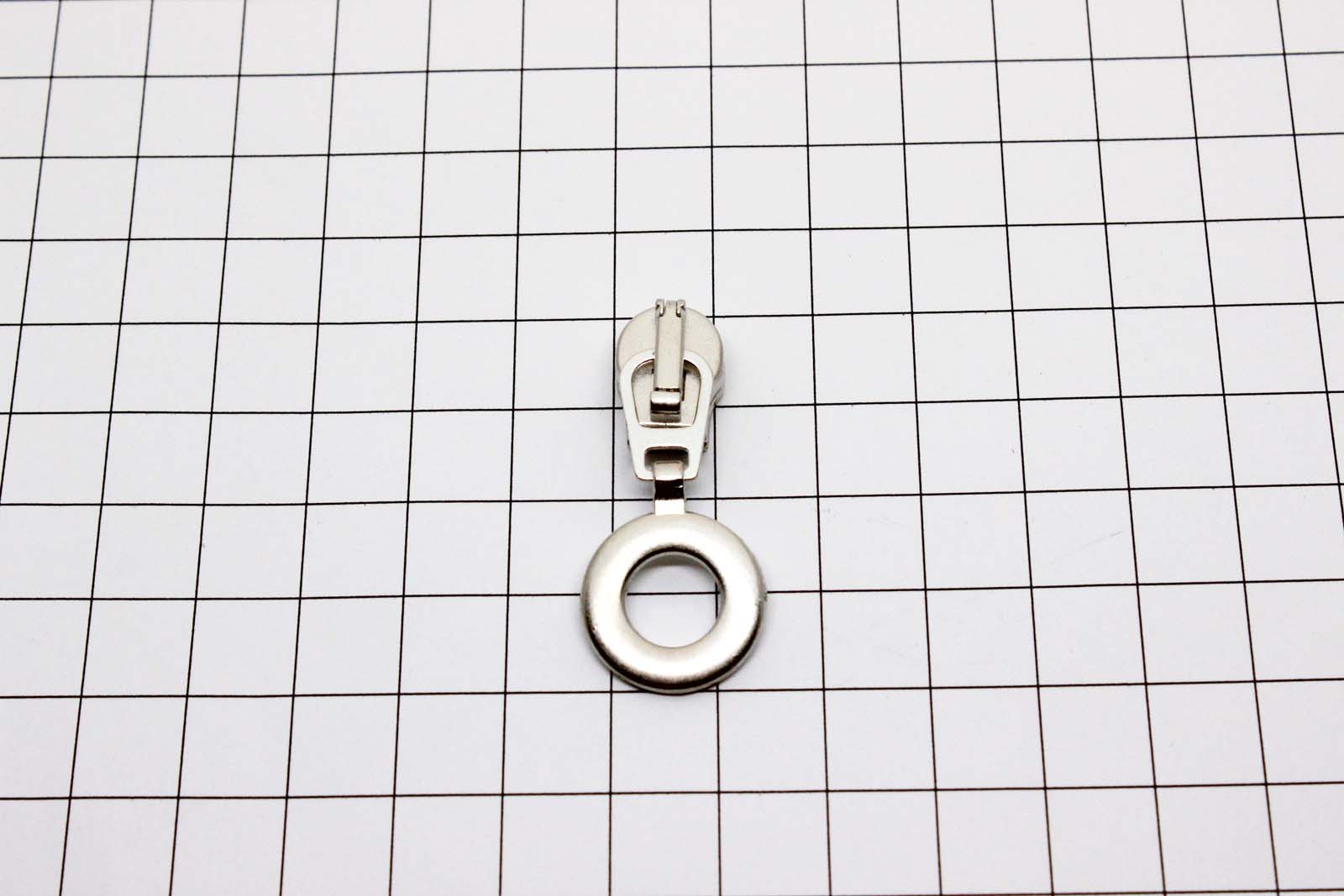 Zusätzlicher Automatikschieber mit Anhänger Disc silber- matt zu unserer Meterware "Reißverschluss metallisiert breit"