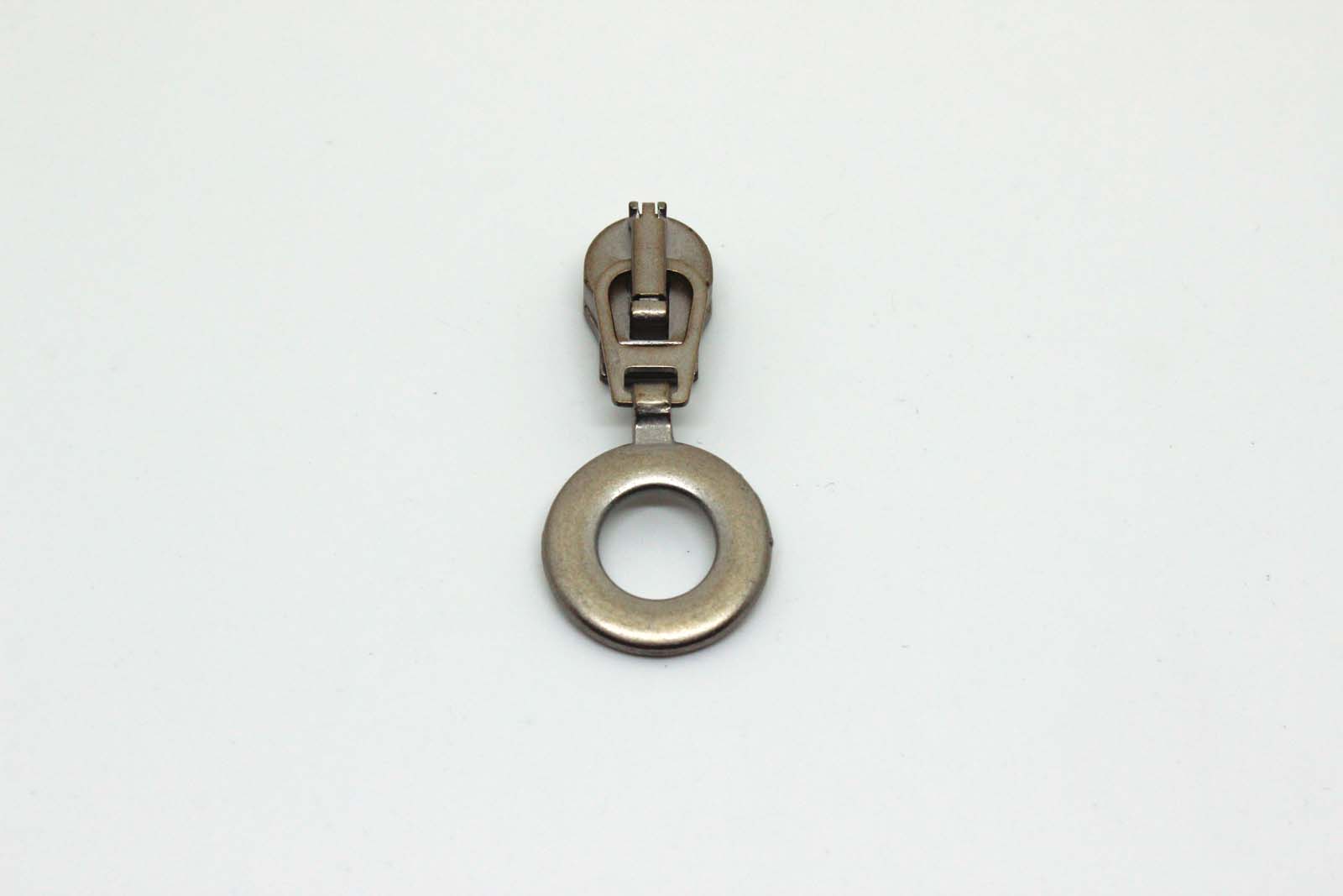 Zusätzlicher Automatikschieber mit Anhänger Disc silber- messing-matt zu unserer Meterware "Reißverschluss metallisiert breit"