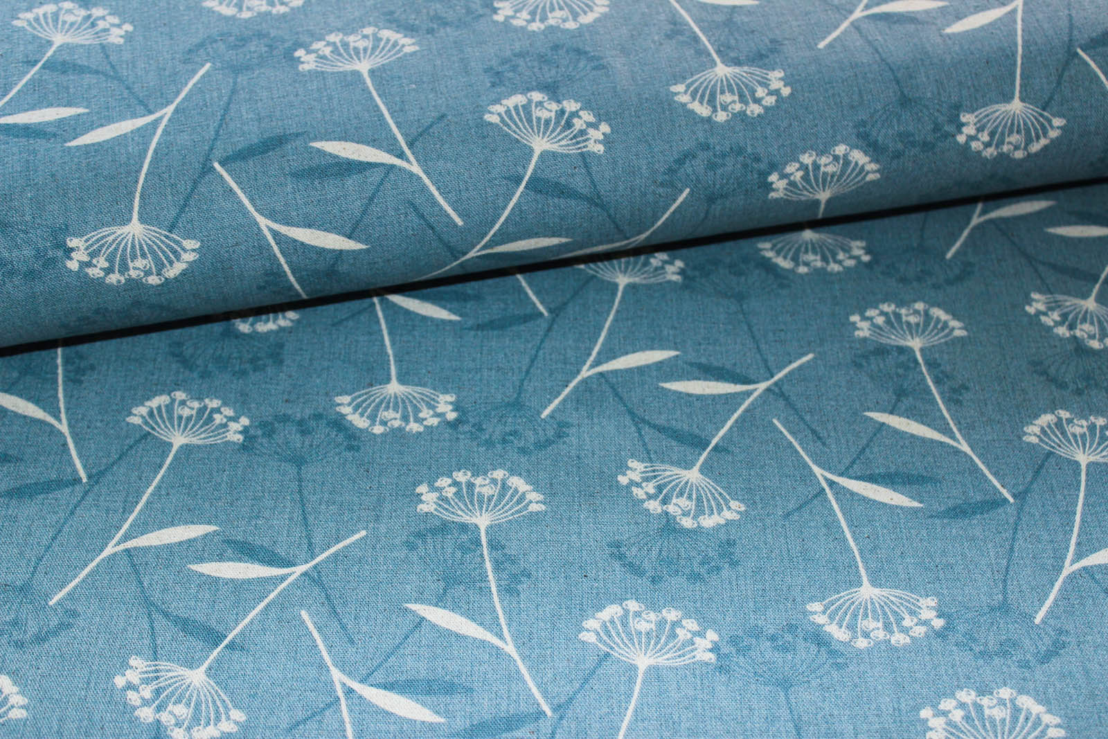 Baumwoll/ Leinenmischung Pusteblume jeansblau