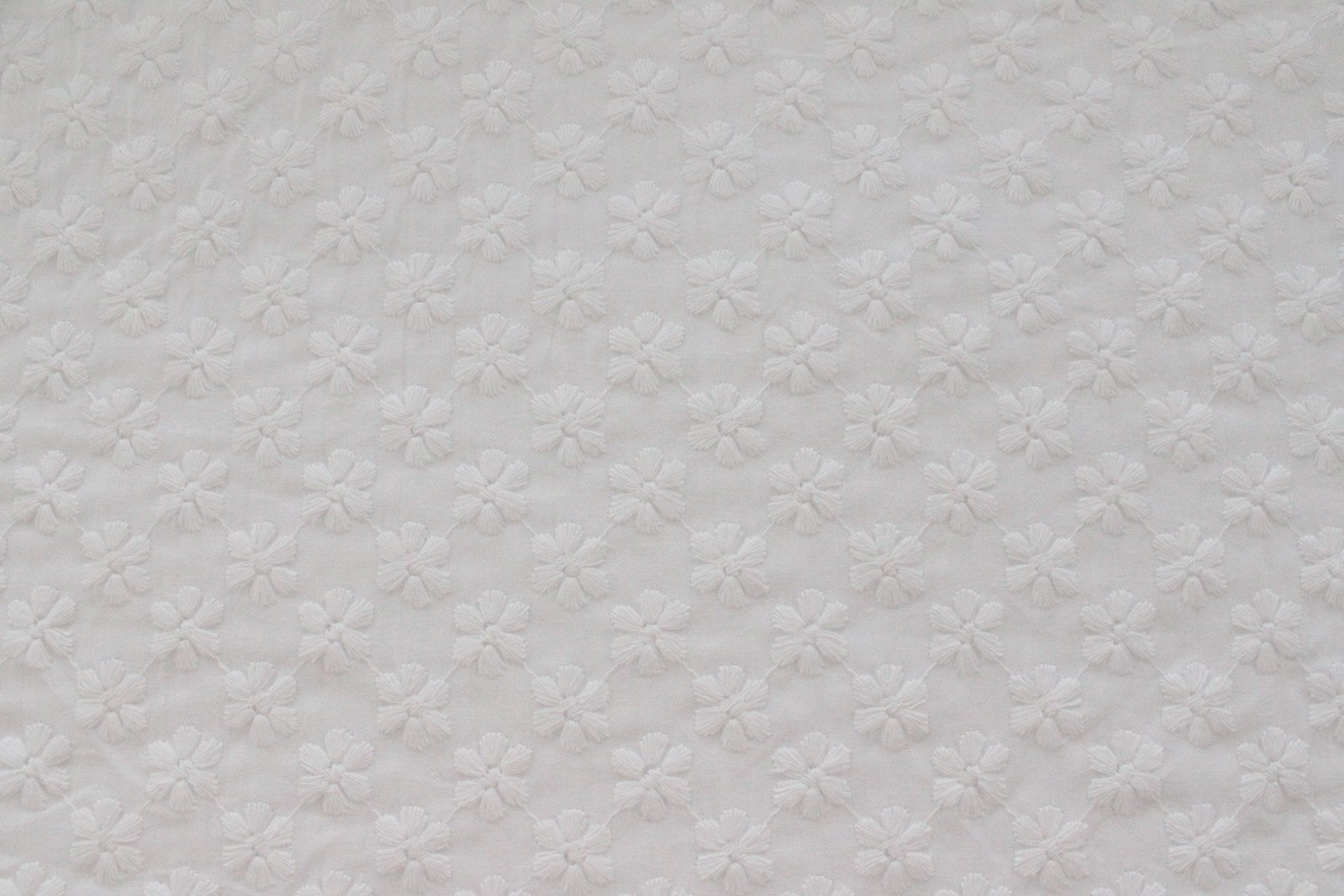 usw.- bestickter Baumwollbatist reinweiß für Blusen, Dirndlblusen, uvm. Die Bumen haben einen Durchmesser von ca. 1,8 cm.