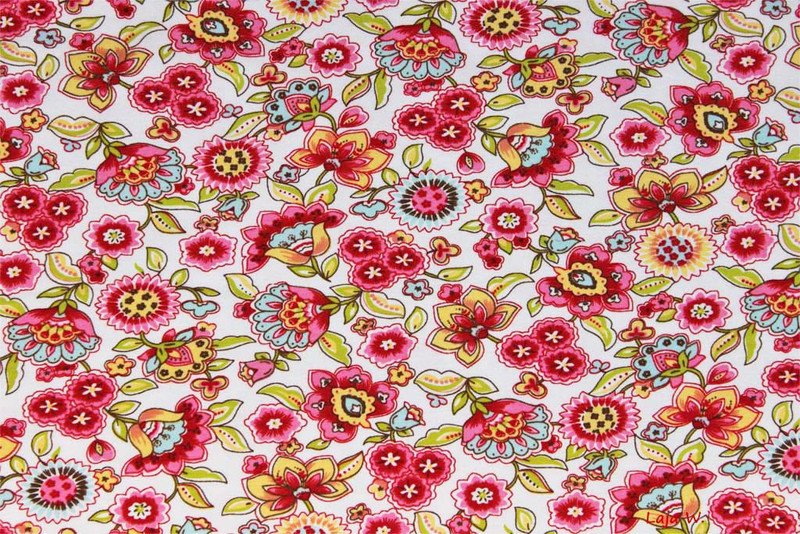 Baumwollstoff für sommerliche Röcke, Kleider und Accessoires mit Blumen von Stenzo auf weißem Untergrund