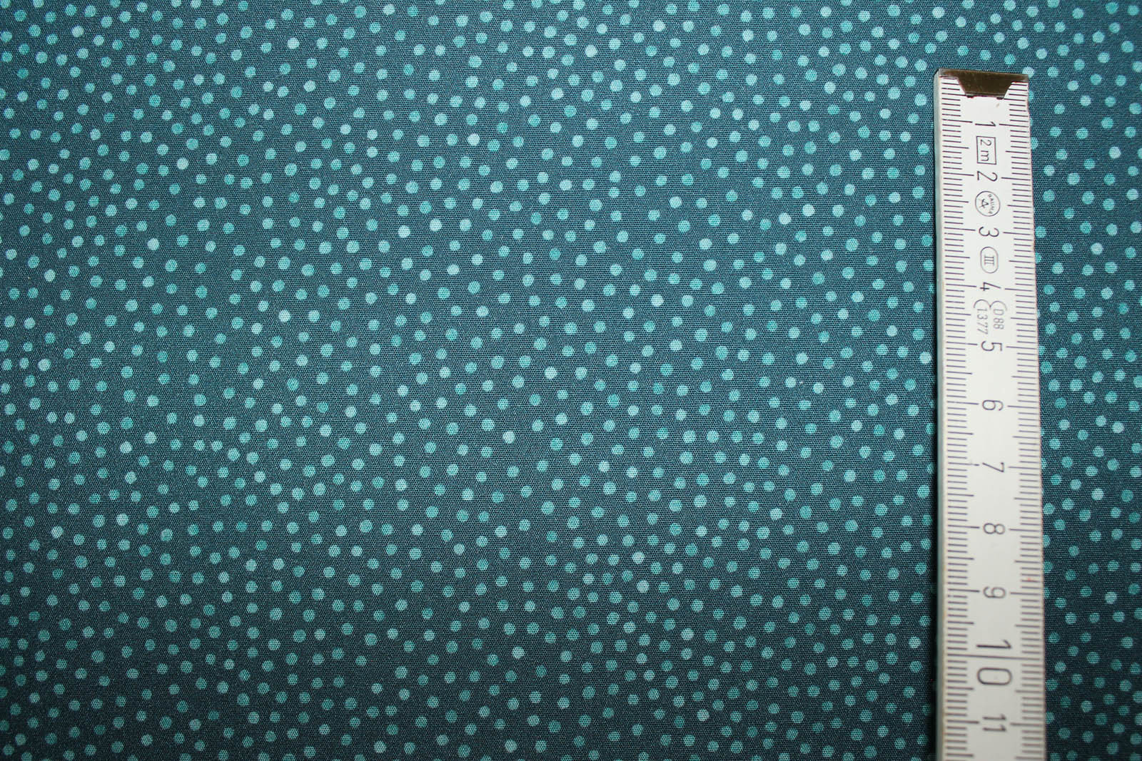 Entdecken Sie unsere wundervolle Baumwollwebware von Hilco in einem dunklen Petrolton mit unregelmäßigen, hellpetrolfarbenen Tupfen. Die etwa 2 mm großen Tupfen verleihen dem Stoff einen einzigartigen Batikeffekt. Der Stoff eignet sich hervorragend für Bekleidung, aber auch für ausgefallene Kreationen im Taschen- und Homedekobereich.Produktdetails: