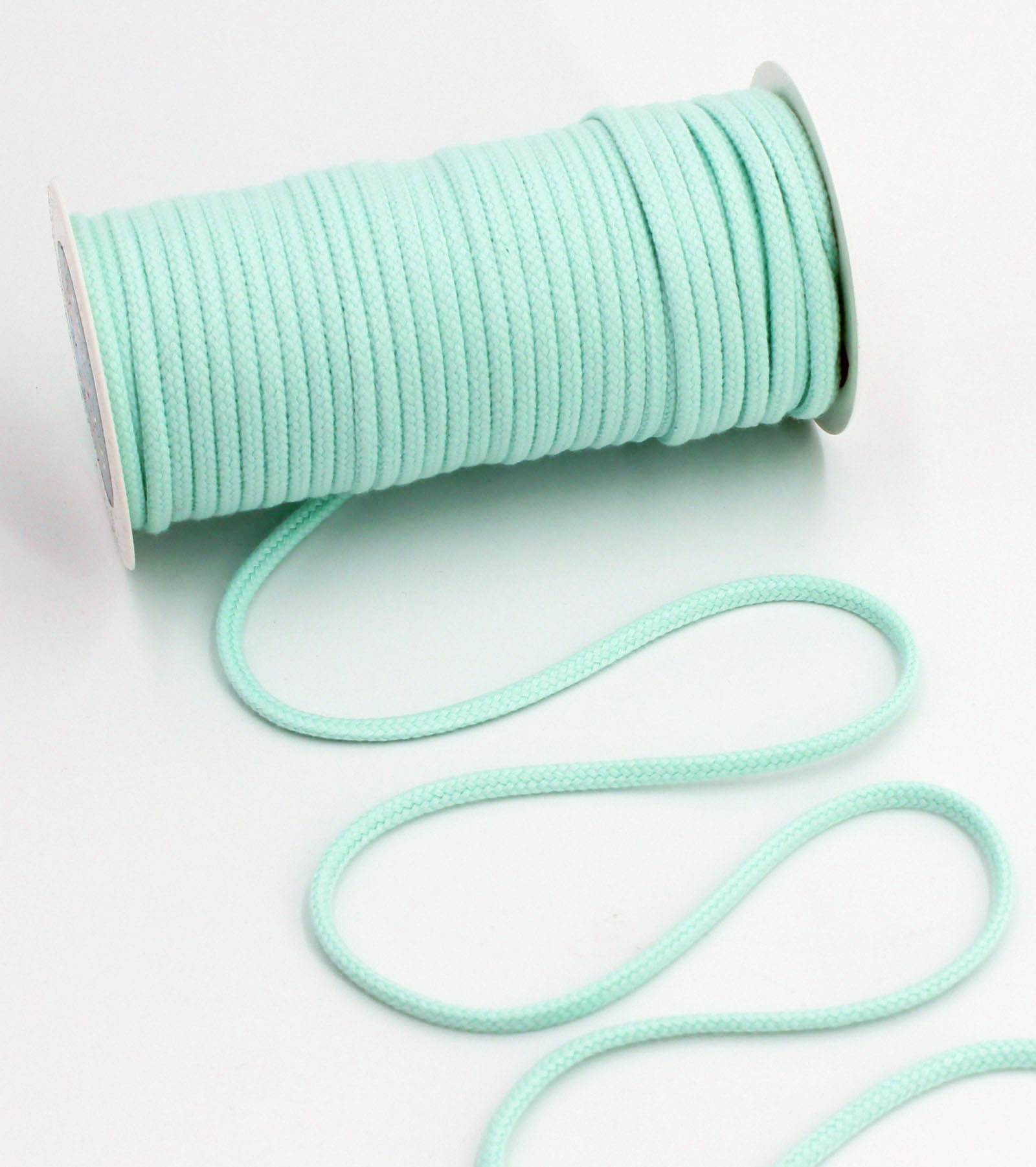 Hochwertige schmalere Baumwollkordel aqua für Hoodies, Turnbeutel o.ä. Das achtfach geflochtene Band aus 100 % Baumwolle ist ca. 6 mm dick und gibt bei Zug leicht nach. Die Kordel ist geschmeidig und stabil.- Zusammensetzung: 100 % Baumwolle