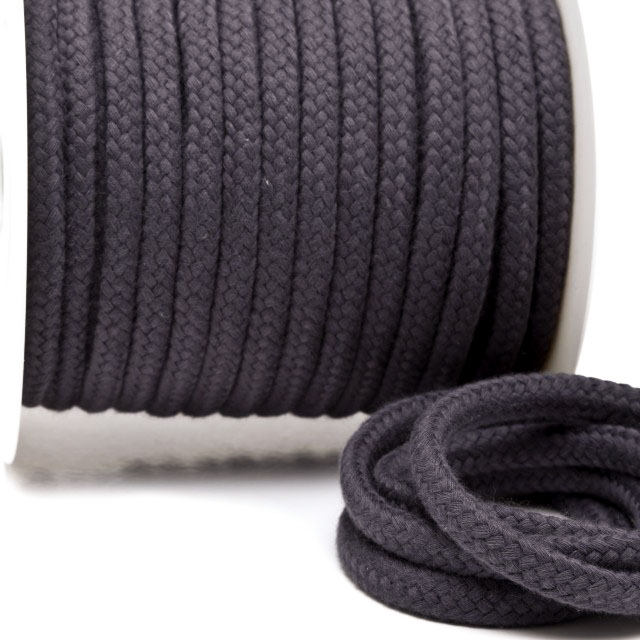 Hochwertige Baumwollkordel anthrazit für Hoodies, Turnbeutel o.ä. Das achtfach geflochtene Band aus 100 % Baumwolle ist ca. 9 mm dick und gibt bei Zug leicht nach. Die Kordel ist geschmeidig und stabil.- Zusammensetzung: 100 % Baumwolle